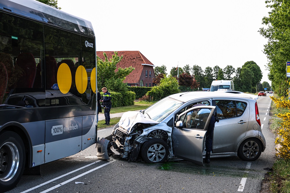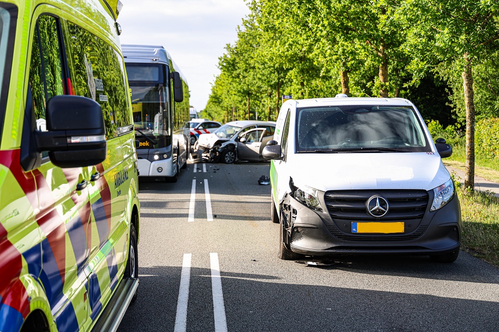Weg dicht na ongeval tussen lijnbus, auto en bestelbus