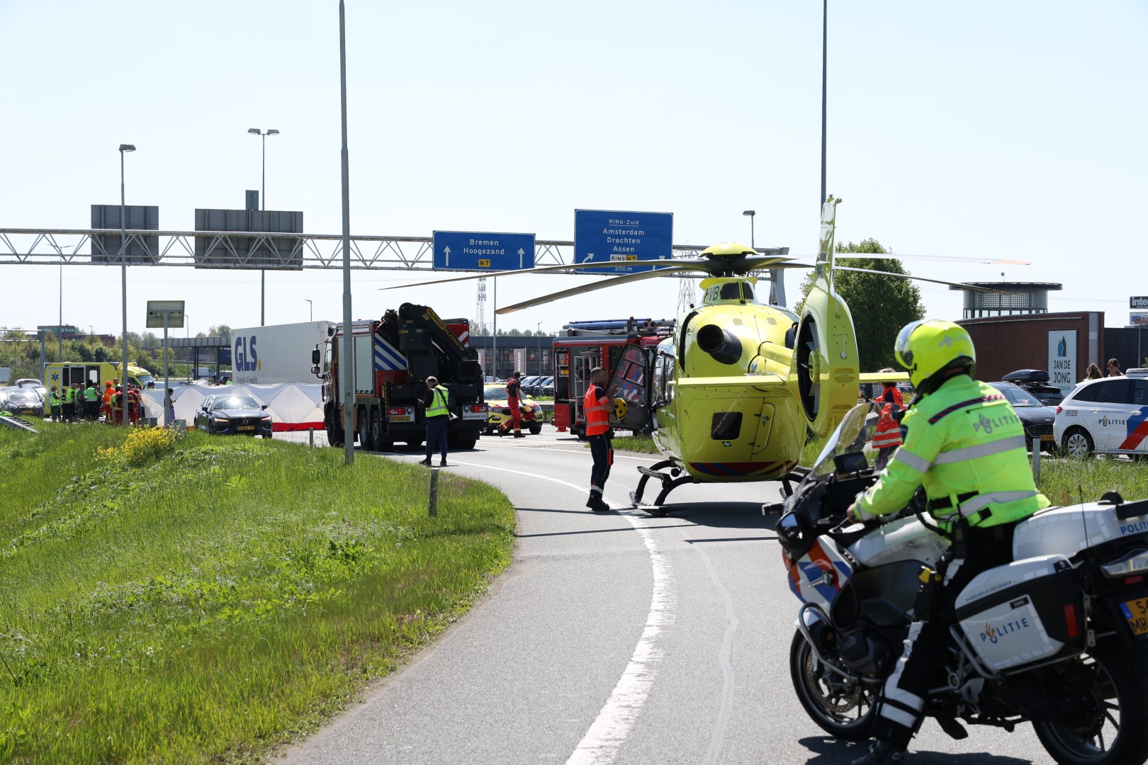 Een bestuurder van een werkbusje is daarbij achterop een vrachtwagen gereden. De weg is volledig afgesloten. Politie, brandweer, ambulance en het Mobiel Medisch Team (MMT) zijn gealarmeerd voor het incident.