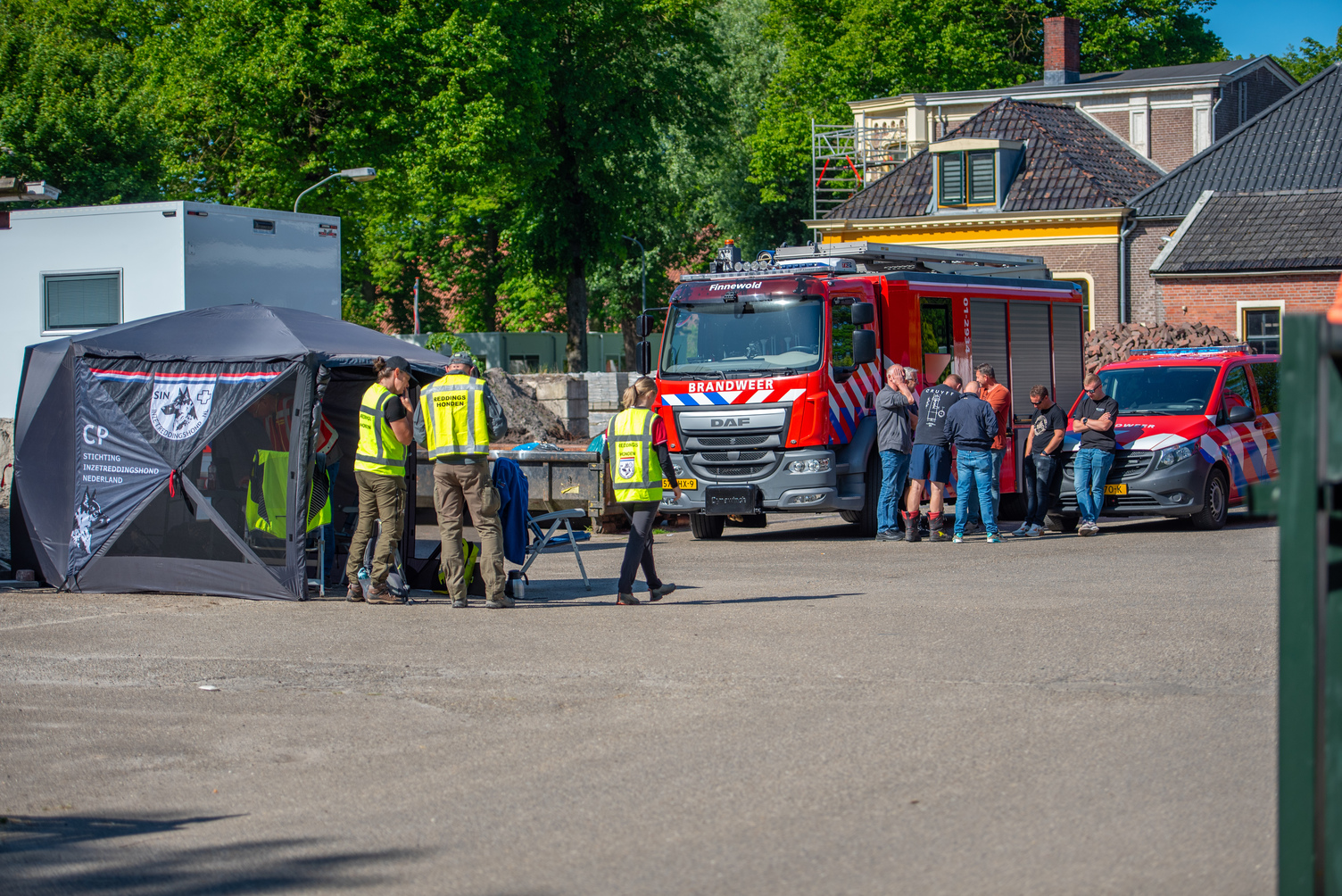 Het gebied rond de Carel Coenraadpolder en Blauwstad wordt systematisch uitgekamd. Vrijwilligers worden voorzien van prikstokken, groene hesjes en een toegewezen zoekzone. Vanuit een tijdelijk coördinatiecentrum tegenover Partycentrum Finnewold worden deelnemers ingedeeld en op pad gestuurd. De sfeer is gespannen en somber, ondanks het zonnige weer. “Zonder hoop, geen leven,” aldus een deelnemende vrijwilliger uit Haren.