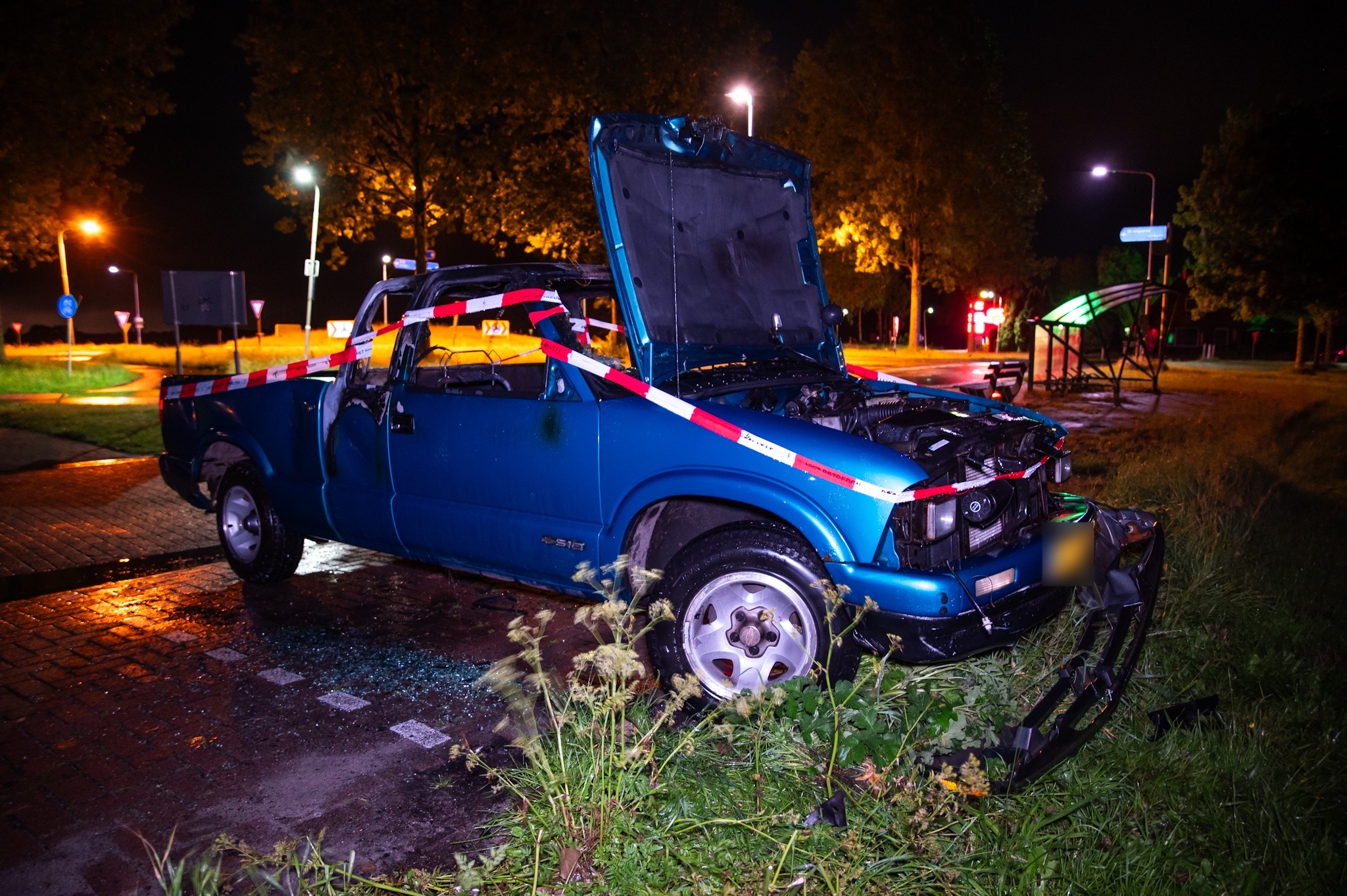 De weg na het tankstation en de carpoolplaats werden tijdelijk afgesloten voor verkeer. Een bergingsbedrijf heeft het uitgebrande voertuig afgevoerd.