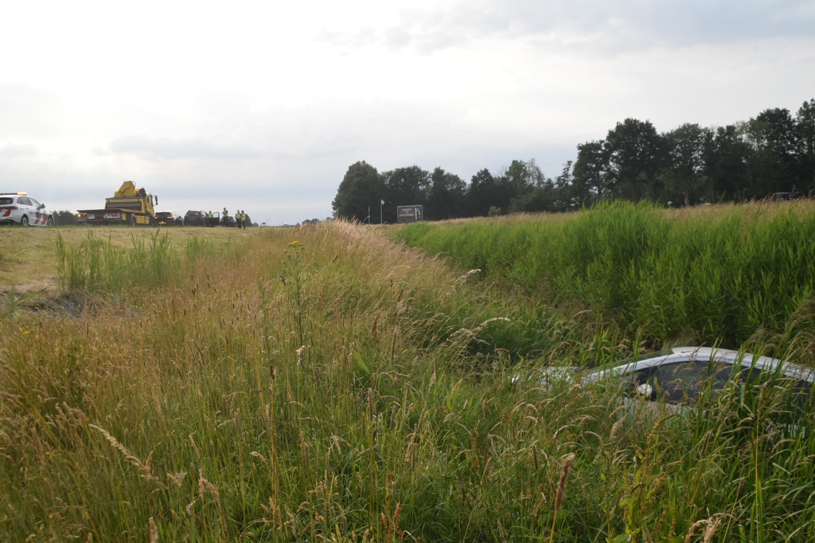 Door nog onbekende oorzaak raakten de auto’s elkaar, waarna één van de voertuigen in een slip raakte, achterstevoren een talud af rolde en in het water tot stilstand kwam. Hulpdiensten, waaronder een ambulance en politie, kwamen snel ter plaatse om eerste hulp te verlenen.