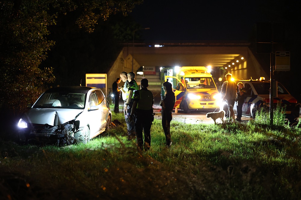 De bestuurder is ter plaatse gecontroleerd door ambulancepersoneel. De auto reed onderweg een lantaarnpaal omver.