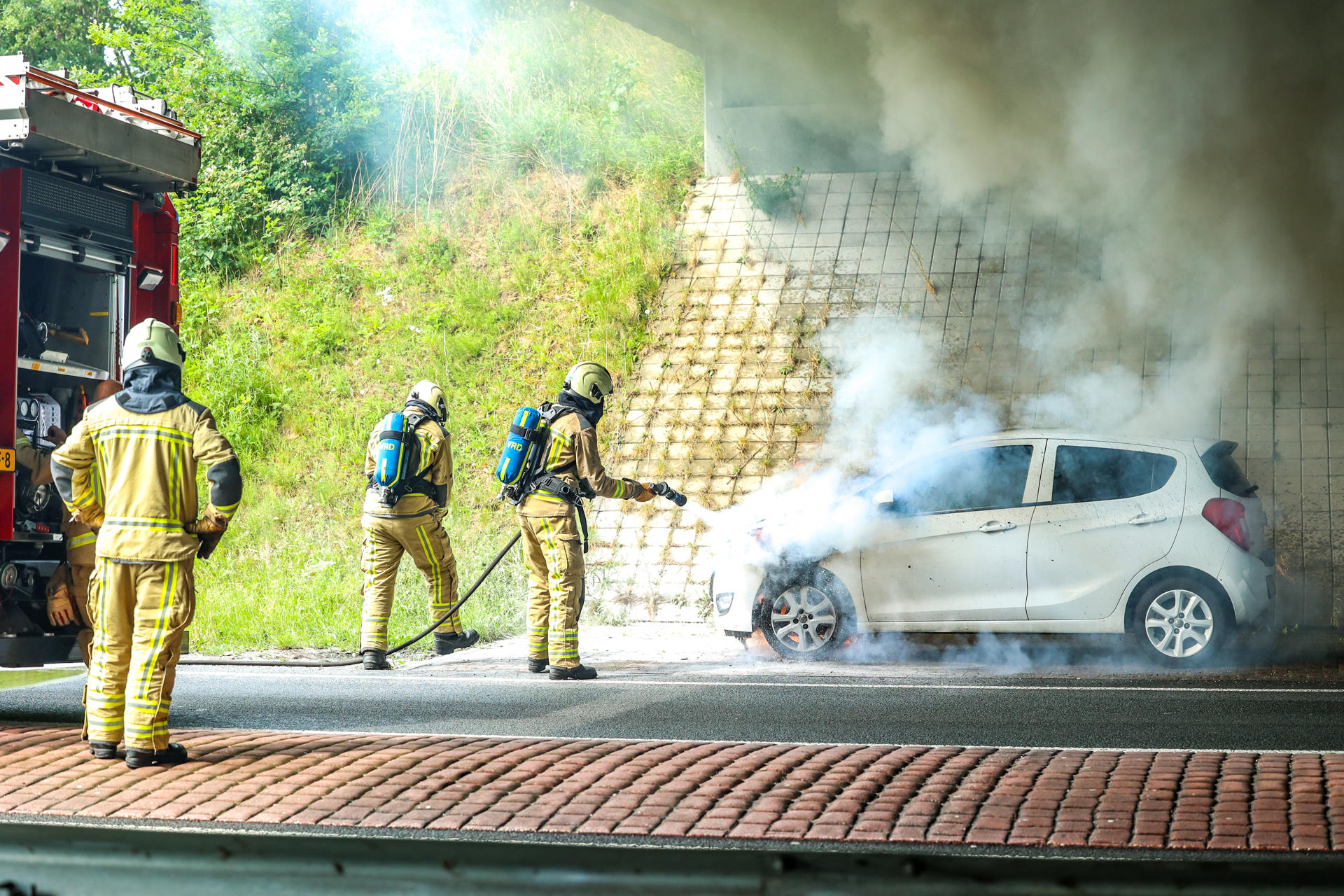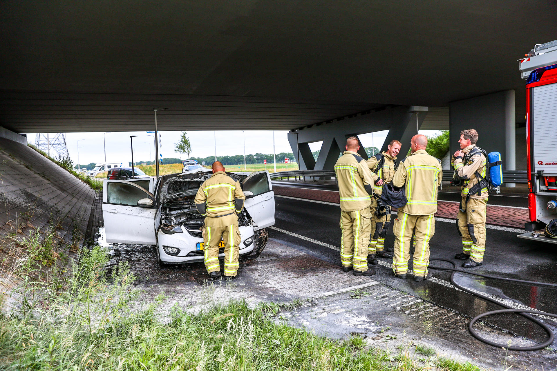 Geplaatst op 4 juni 2025, om 16:40 uurEMMEN – Woensdagmiddag rond 15.42 uur is een personenauto volledig in brand gevlogen op de N381, onder het viaduct van de N34. De brandweer van Emmen werd gealarmeerd en wist het vuur snel onder controle te krijgen.