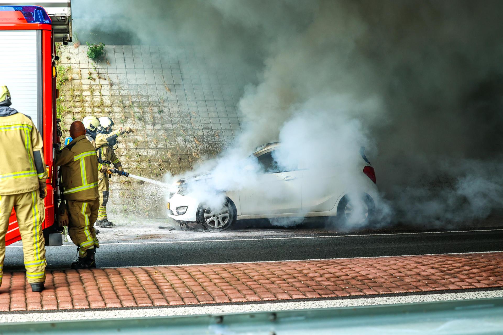 De auto raakte zwaar beschadigd en wordt afgevoerd. De oorzaak van de brand is nog onbekend.