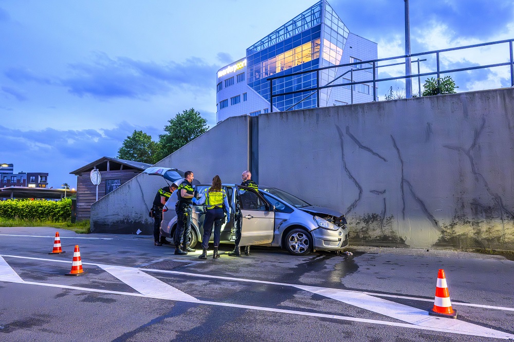 De bestuurder raakte vermoedelijk de macht over het stuur kwijt, reed een vluchtheuvel op, raakte een paaltje en kwam tegen de muur tot stilstand. Direct na de klap vluchtte de bestuurder te voet.