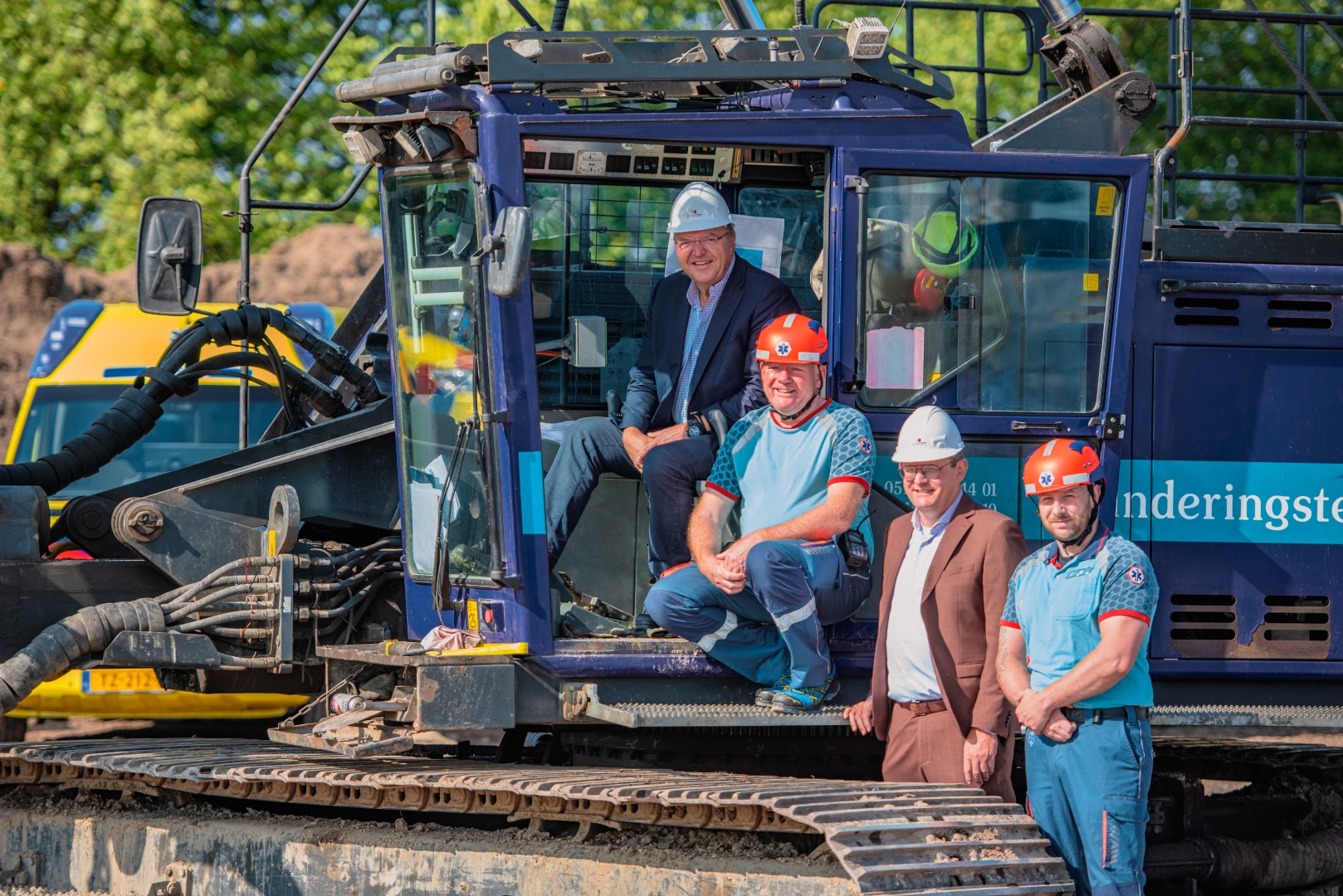 WINSCHOTEN – De bouw van de nieuwe ambulancepost aan de J.A. Koningstraat 23 op industrieterrein Hoogebrug is donderdag 12 juni officieel van start gegaan. Op het 6.000 m² grote terrein werd symbolisch de eerste paal geslagen door wethouder Erich Wünker, in aanwezigheid van bestuurder Jaap-Frank Ponstein en Renate Groenewold van Groenewold Bouw.