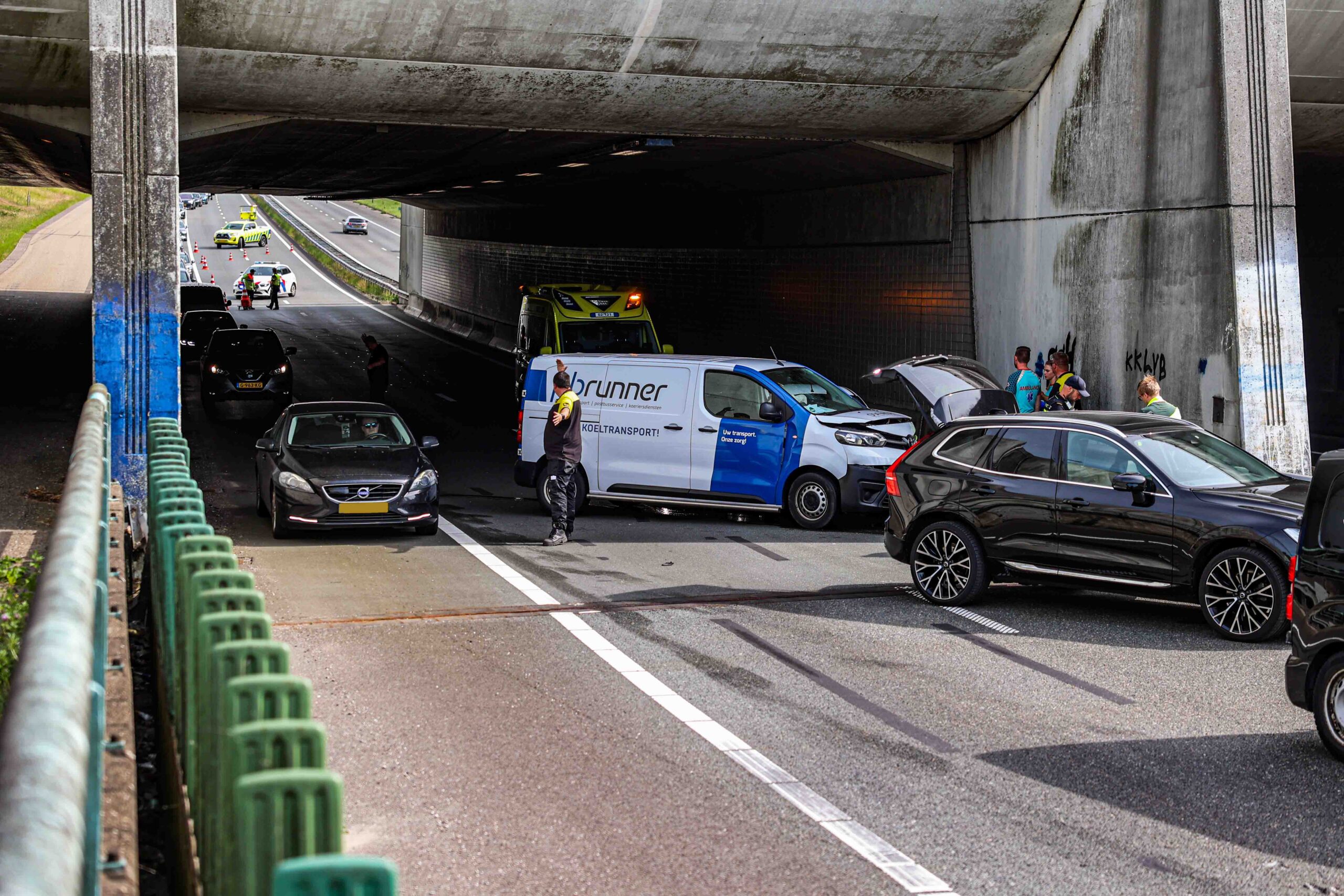 Rond 16.45 uur werden hulpdiensten gealarmeerd. Bij aankomst bleek het te gaan om een botsing tussen meerdere auto’s. Het verkeer kon slechts via de vluchtstrook passeren, wat leidde tot vertraging.