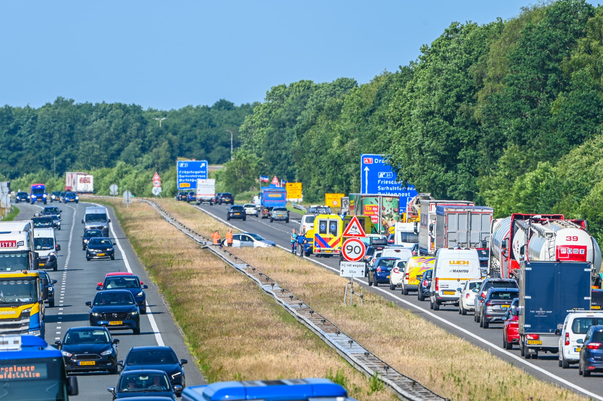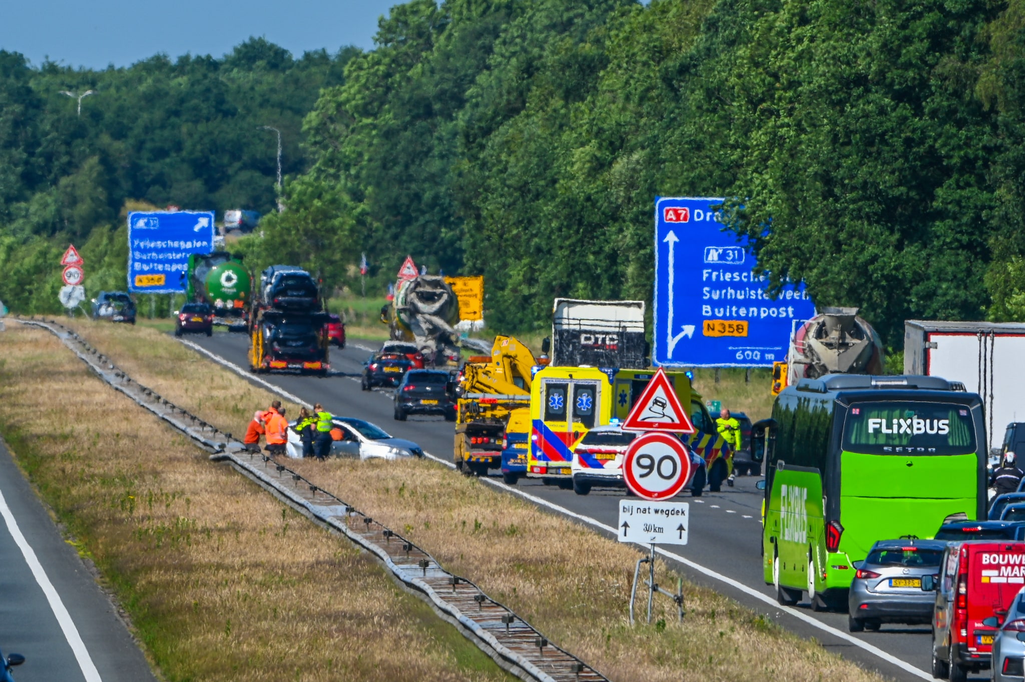 De weg is gedeeltelijk afgesloten om hulpverlening en onderzoek mogelijk te maken. Door het incident is opnieuw een lange file ontstaan, met vertraging vanaf Boerakker in de richting van Frieschepalen. De politie doet onderzoek naar de exacte toedracht van het ongeval.