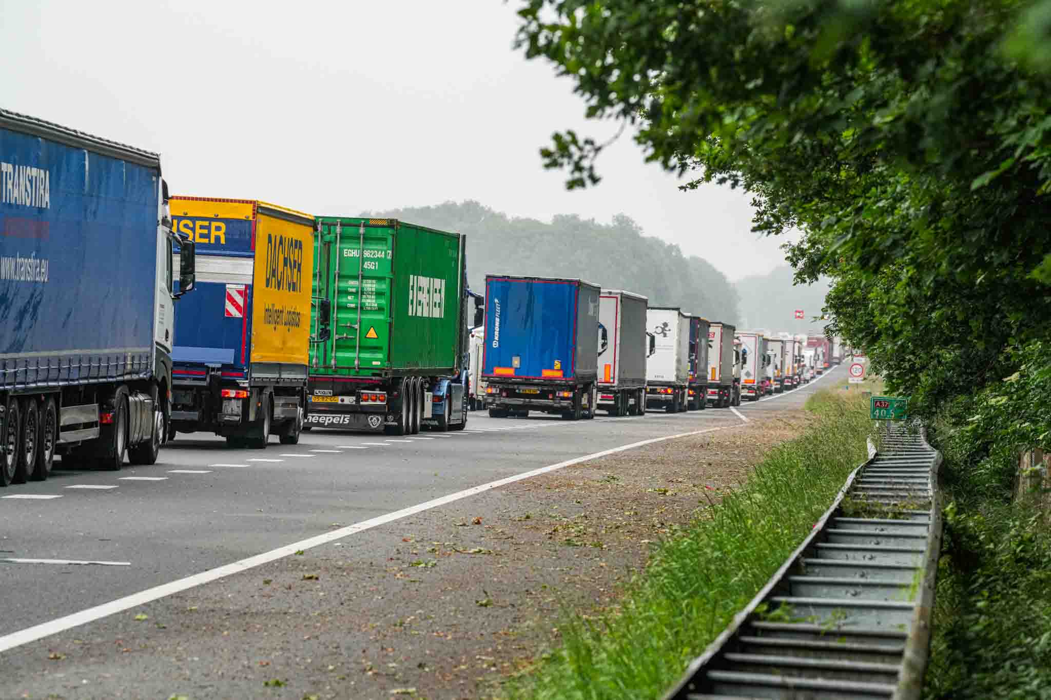 Ook op omliggende binnenwegen loopt het verkeer vast door omrijdend verkeer. Weggebruikers moeten rekening houden met extra reistijd en vertraging.