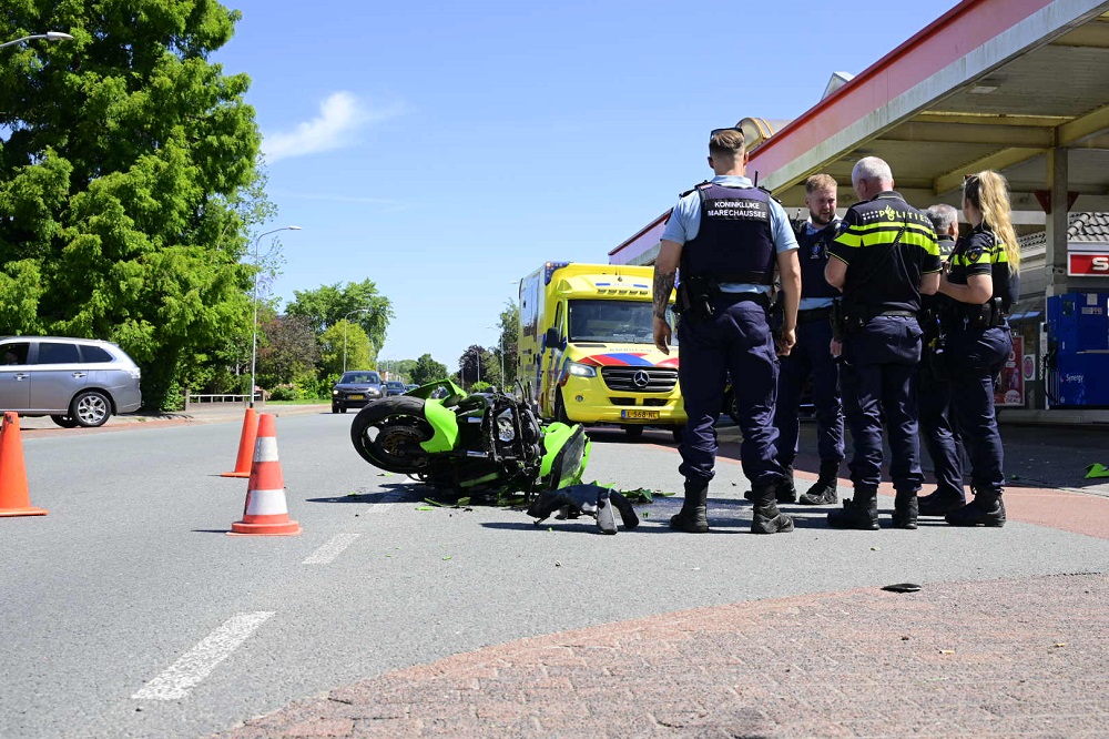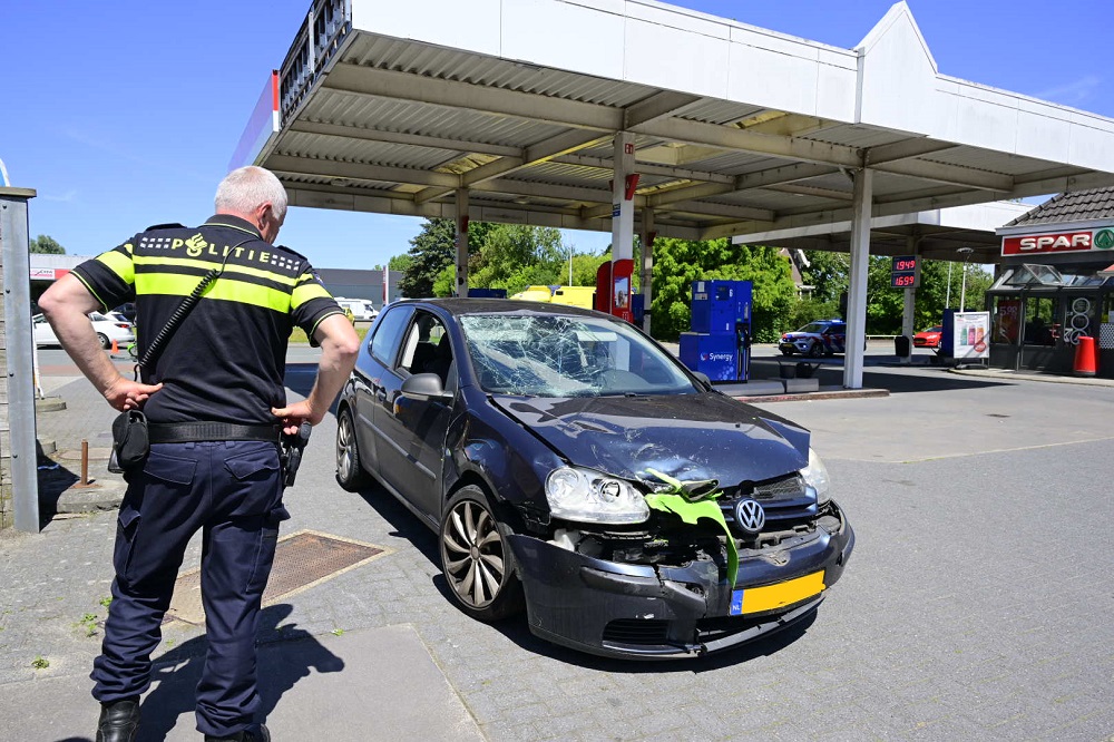 Een automobilist wilde het terrein van een tankstation oprijden en zag daarbij de motorrijder over het hoofd. De motorrijder vloog over de motorkap en kwam op de weg ten val. Het slachtoffer werd ter plaatse behandeld door ambulancepersoneel.