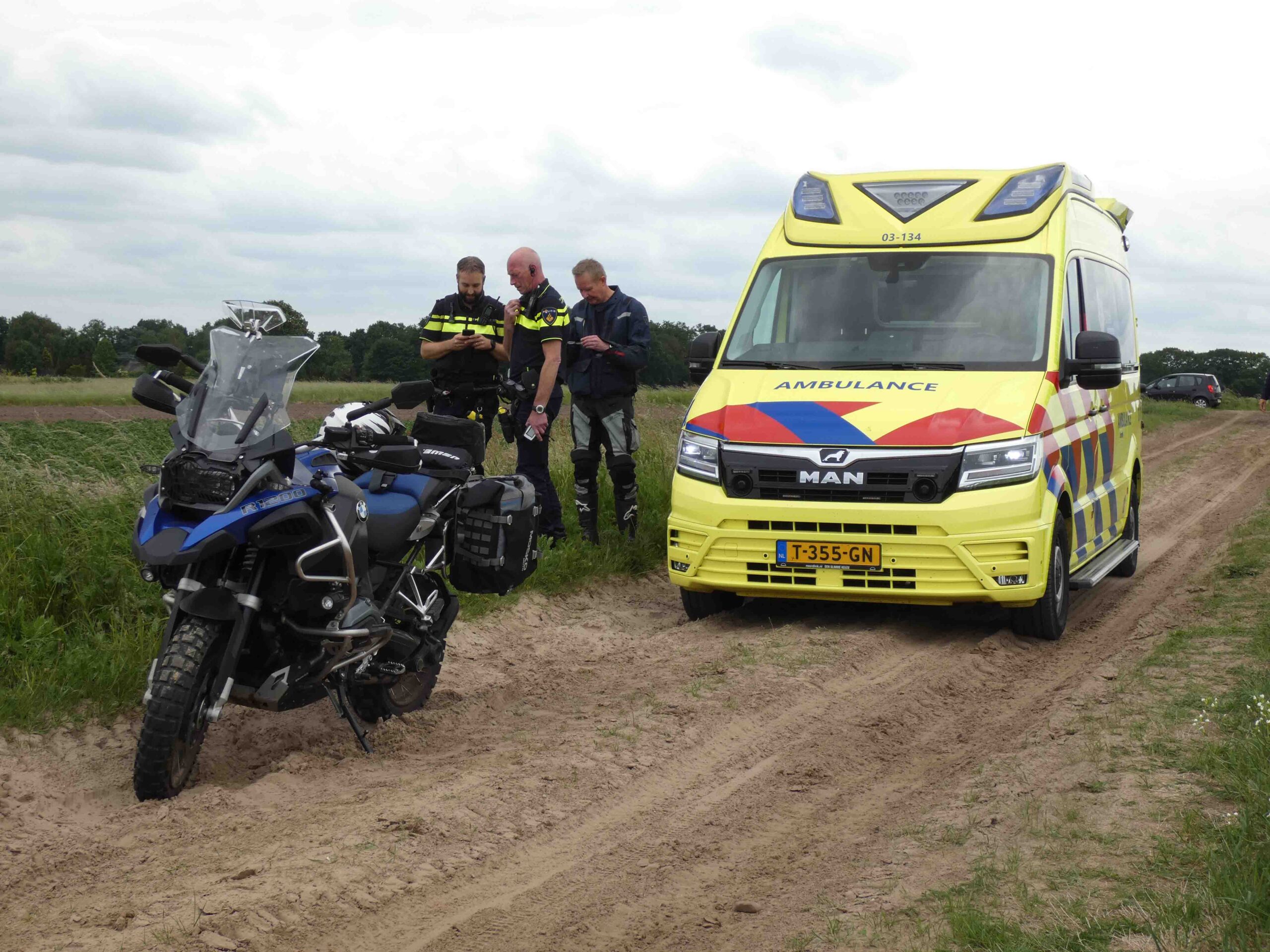Motorrijder ten val op zandpad, ambulance ter plaatse