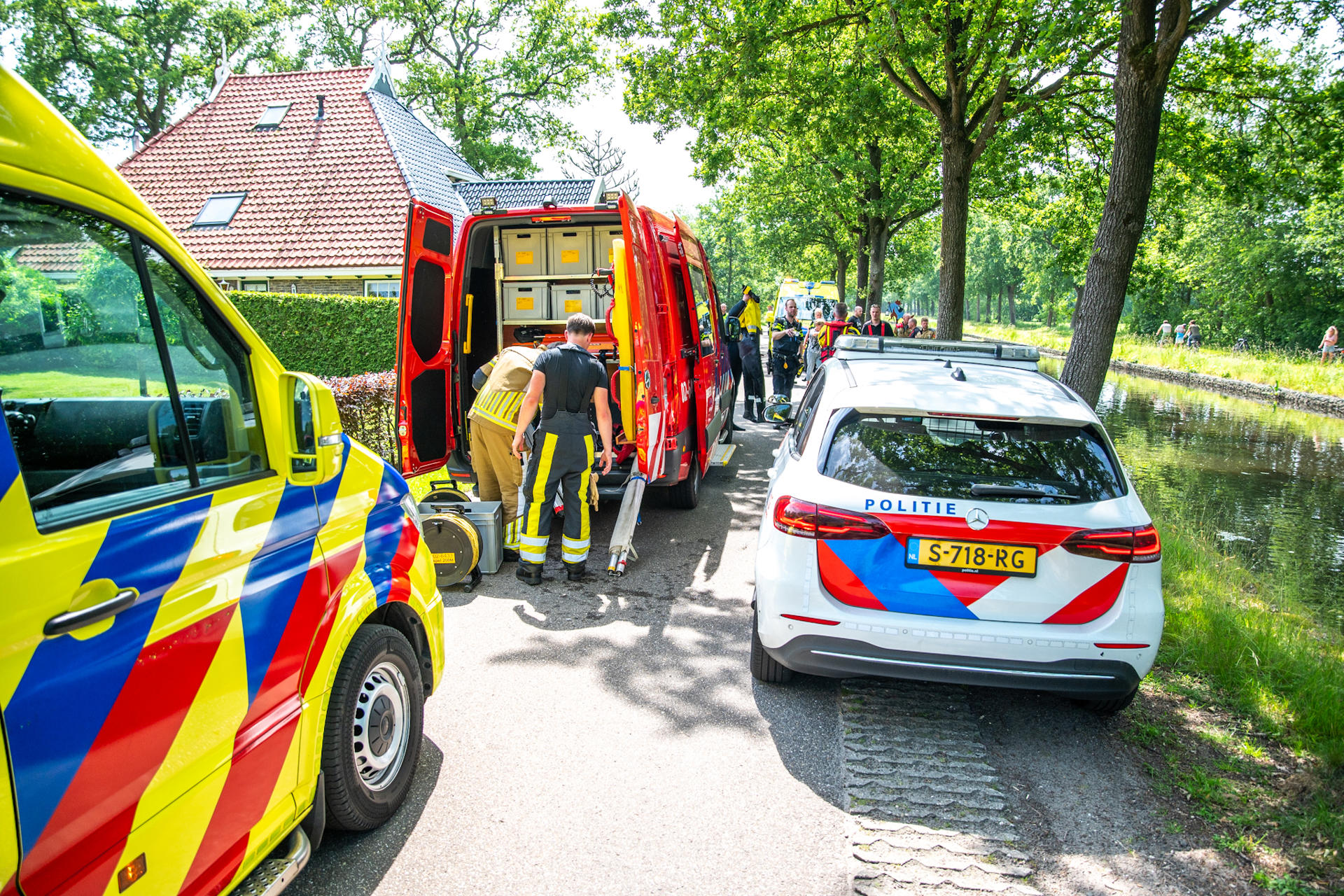 De weg rondom het incident is door de politie afgesloten om hulpverleners de ruimte te geven. Het is nog onduidelijk hoe de persoon te water is geraakt.