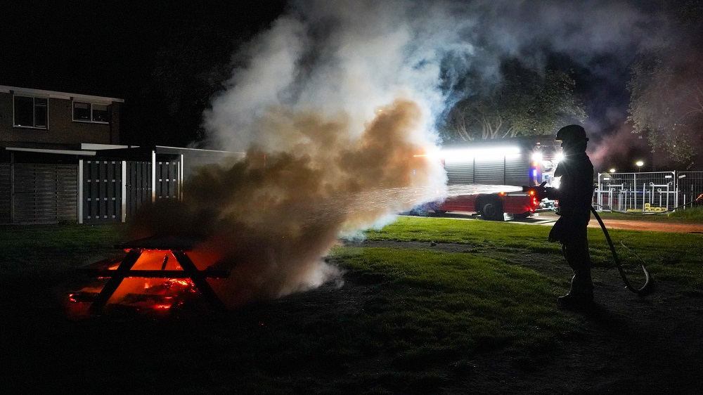 Picknicktafel in lichterlaaie, brand snel onder controle