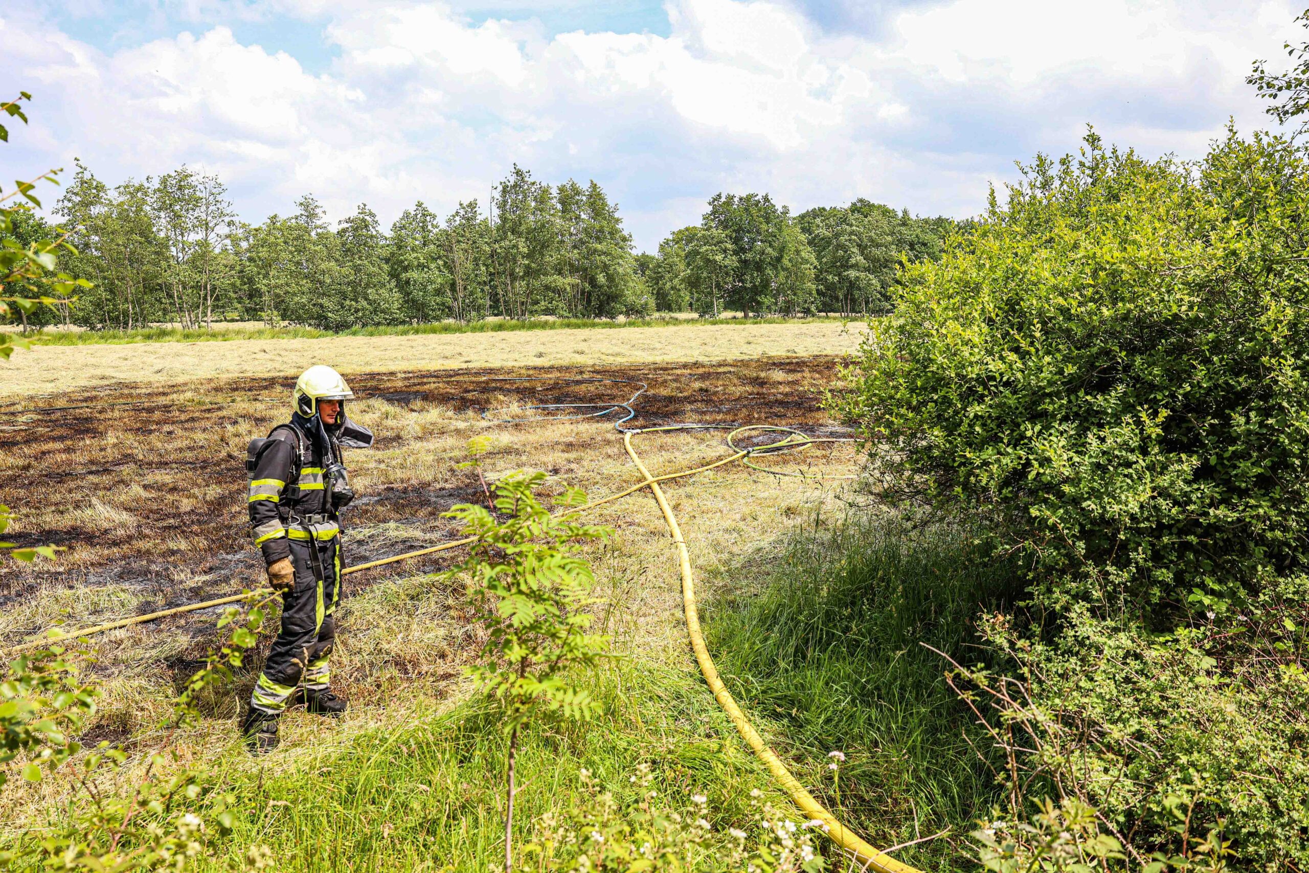 Stuk land in brand, brandweer voorkomt uitbreiding