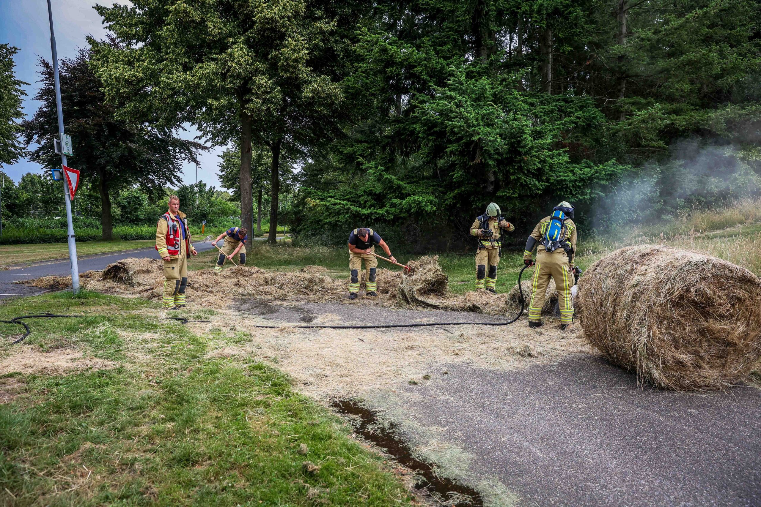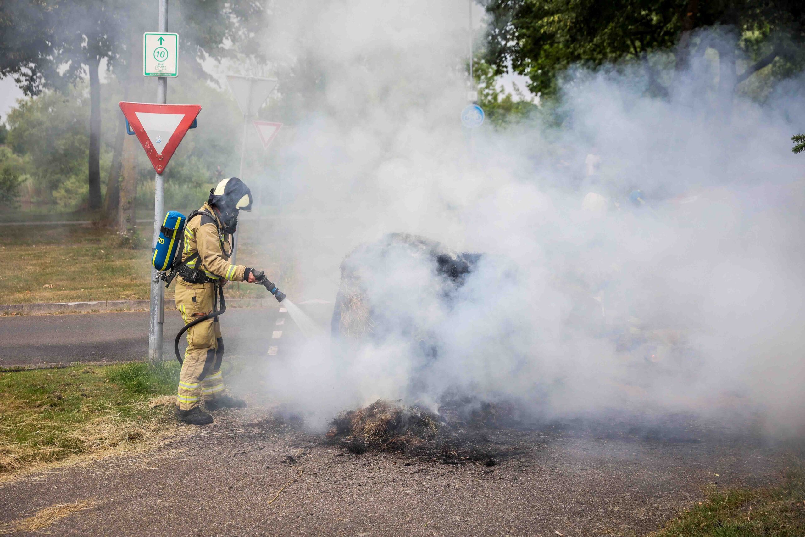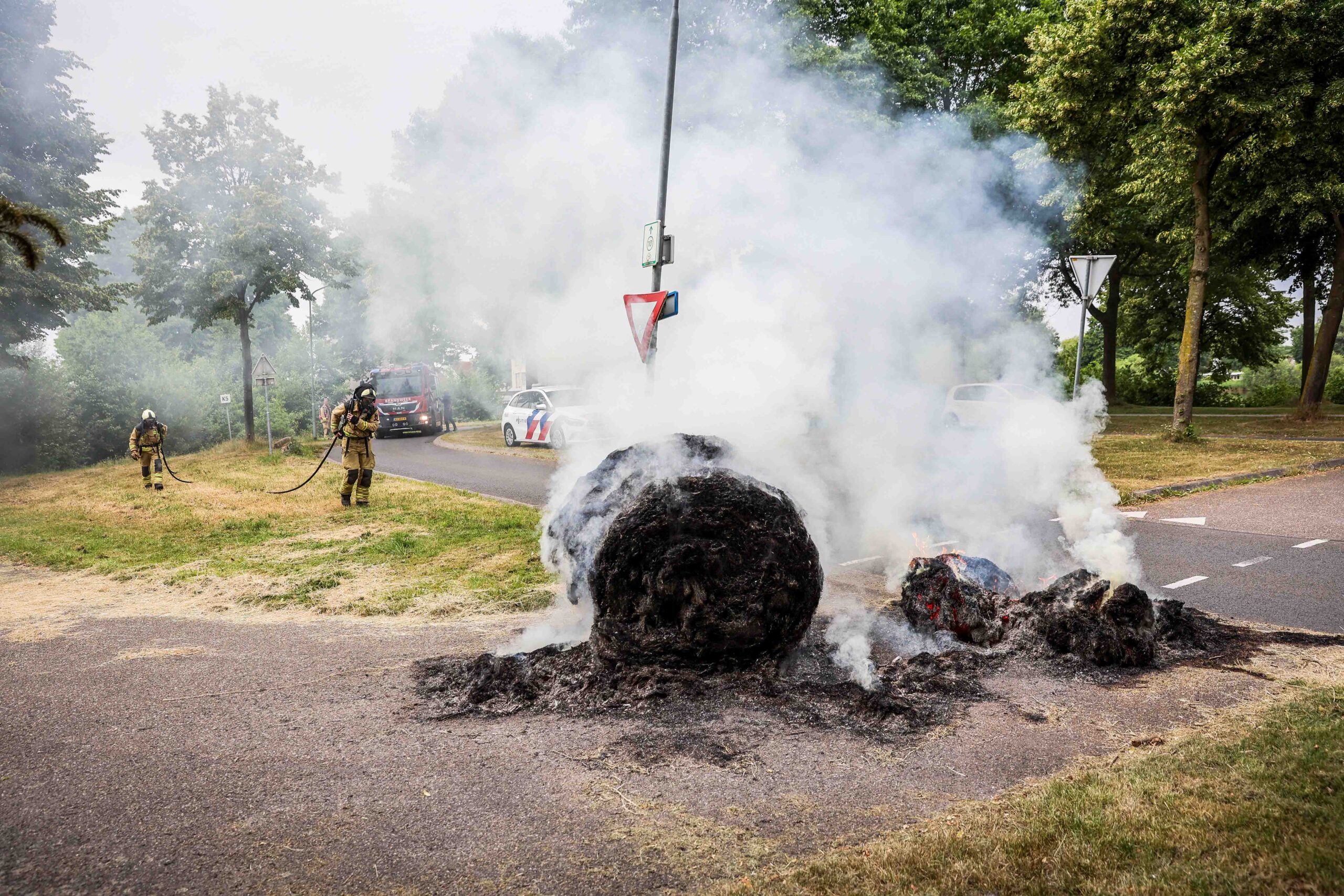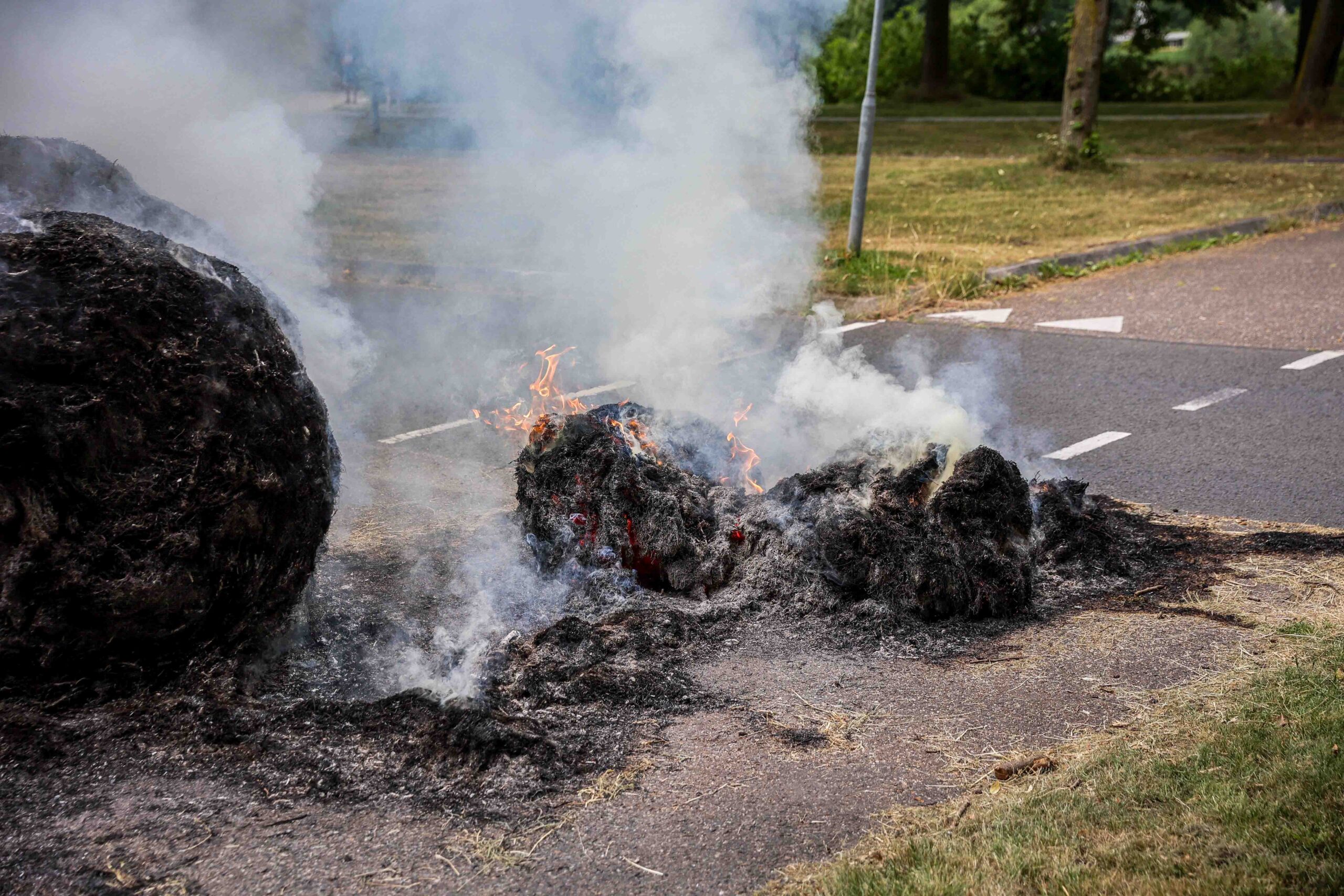 Volgens omstanders zouden de balen eerst van een verhoging naar beneden zijn geduwd en daarna in brand zijn gestoken. De brandweer heeft de balen uit elkaar gehaald en afgeblust om het vuur volledig te doven.