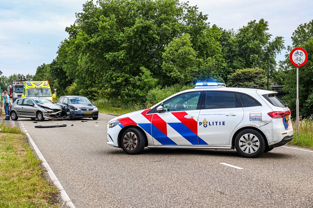 De politie sloot de weg af voor de berging van de voertuigen.