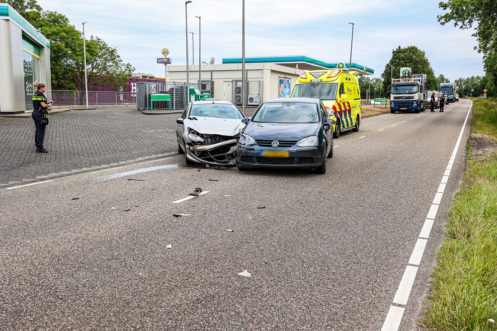Twee personenauto’s botsten, waarbij één voertuig vanaf het tankstation kwam en de ander over het hoofd zag.Ambulancepersoneel onderzocht de betrokkenen op letsel, maar gelukkig raakte niemand gewond.