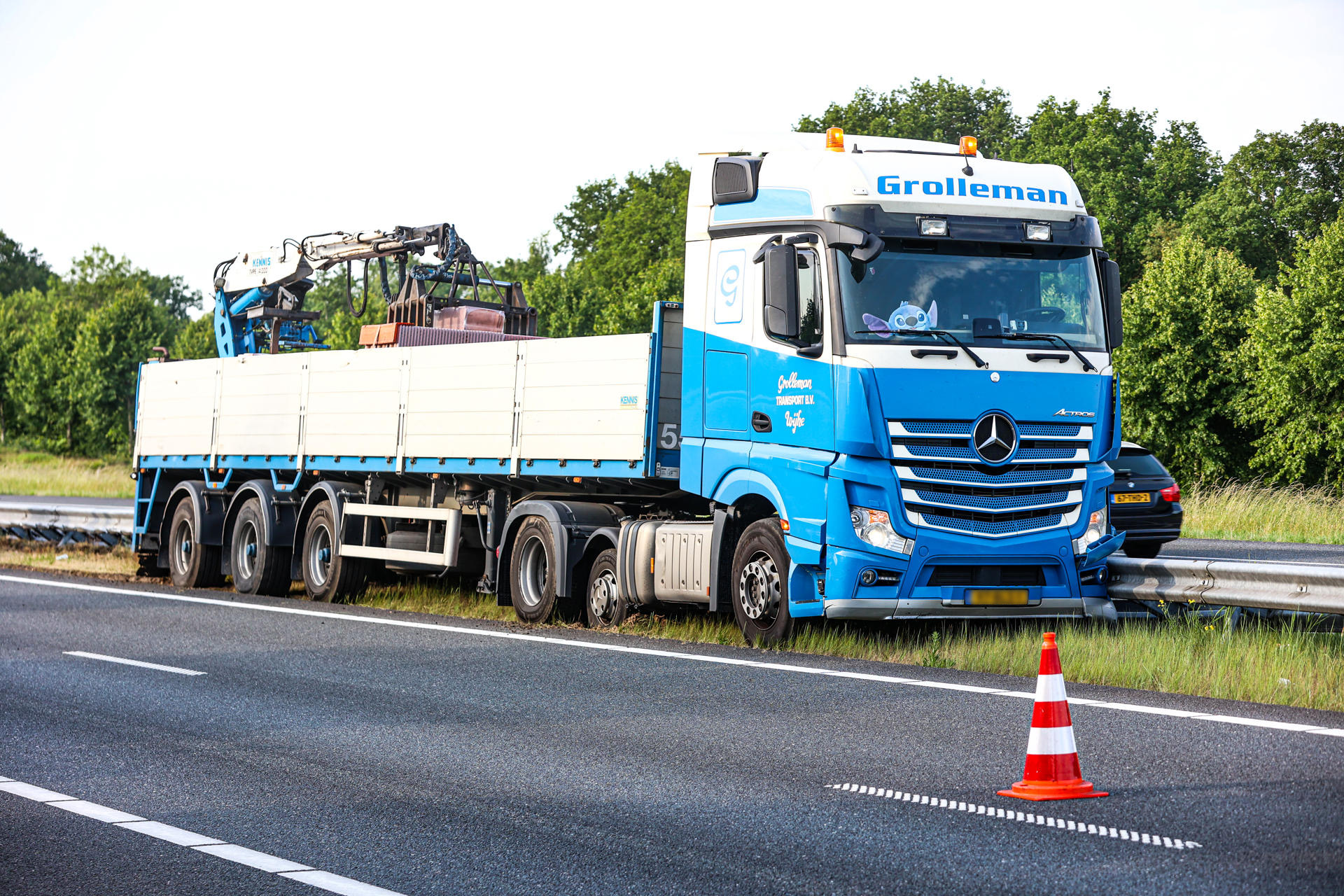 Vrachtwagen ramt vangrail, bestuurder meegenomen voor controle