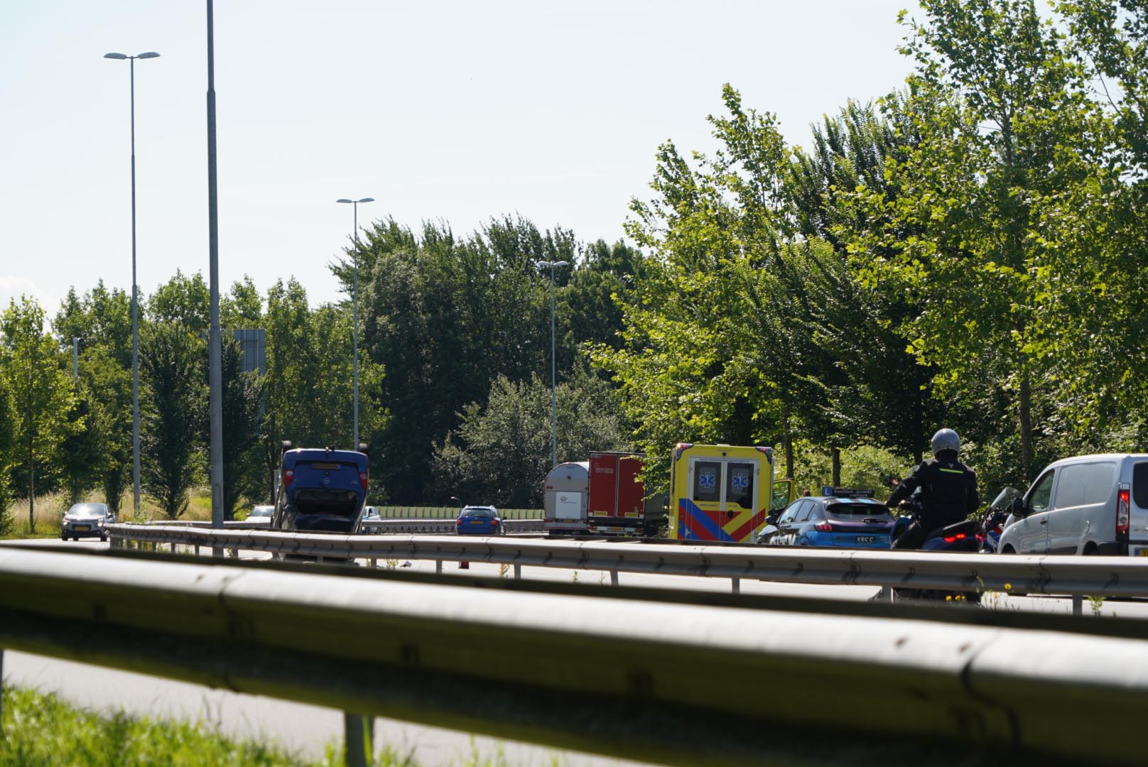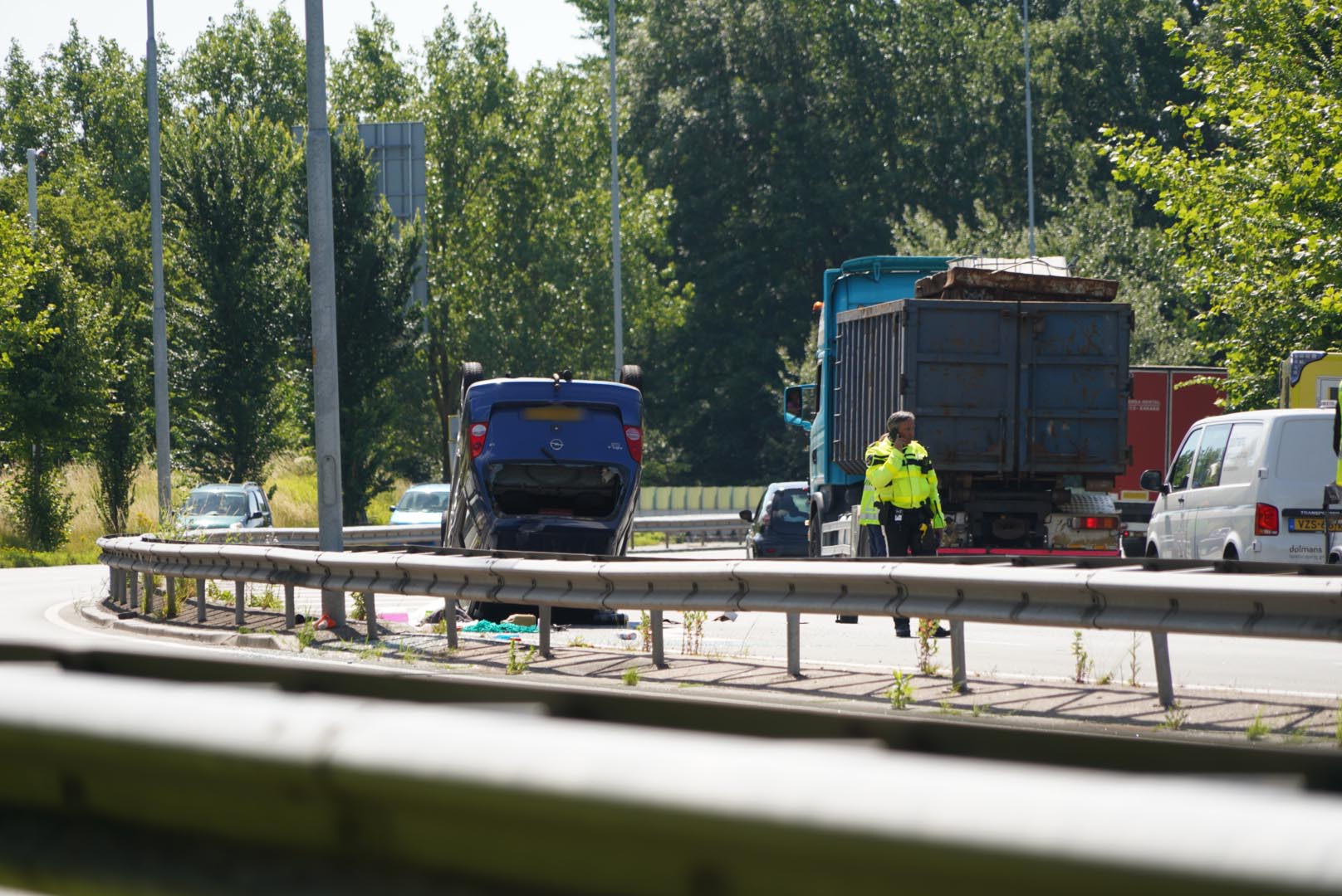 Rond 11.10 uur kwamen politie, brandweer en ambulance ter plaatse. Een personenauto bleek door onbekende oorzaak op zijn kant terecht te zijn gekomen. Of er sprake was van een botsing met een ander voertuig is nog niet duidelijk. Eén persoon is door ambulancepersoneel meegenomen voor verdere behandeling.