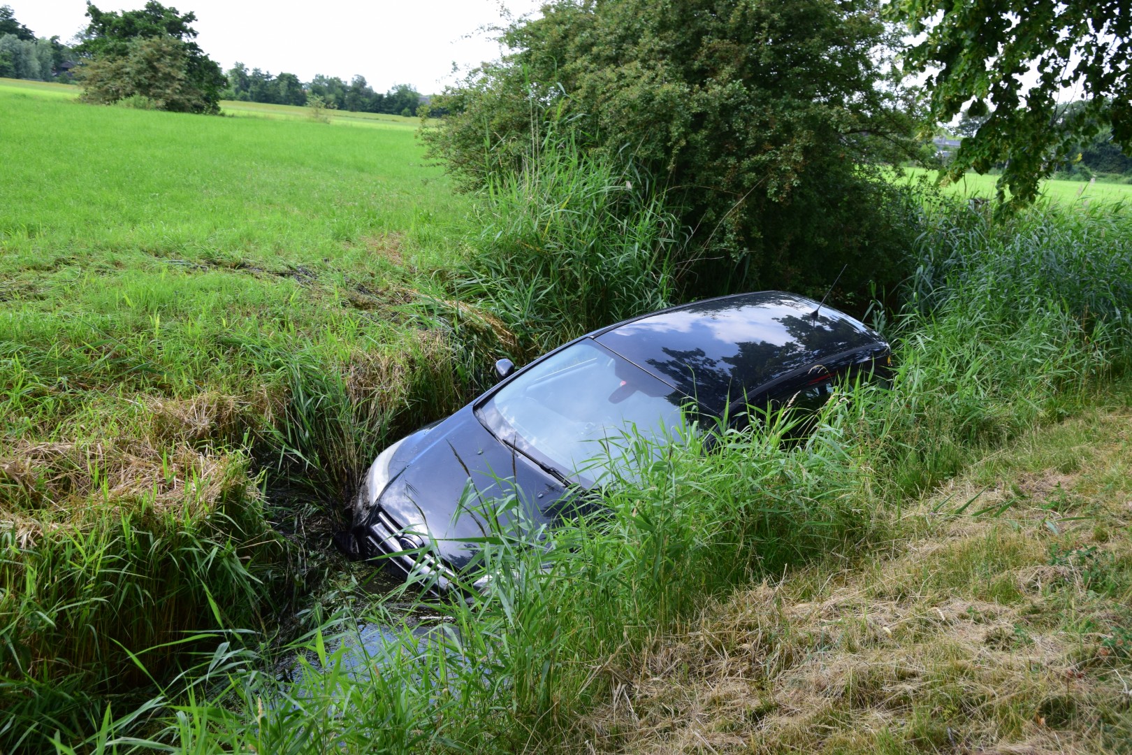 Door de uitwijkmanoeuvre raakte de auto van de weg en belandde in de naastgelegen sloot. De man probeerde het voertuig nog onder controle te houden, maar dit mislukte.