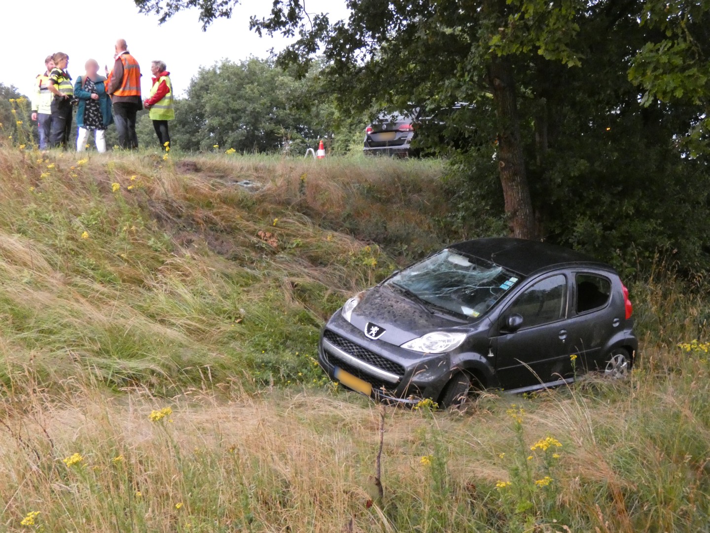 De bestuurder verloor in de bocht de controle over het voertuig, dat vervolgens het talud afreed. De auto kwam vermoedelijk op de zijkant terecht, maar stond onderaan weer op vier wielen. Er raakte niemand gewond en een ambulance was niet nodig.