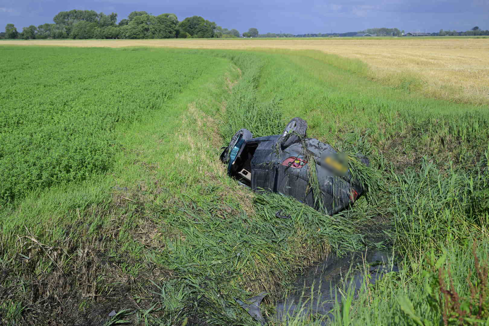 De bestuurder is ter plaatse nagekeken door ambulancepersoneel, maar hoefde niet mee naar het ziekenhuis. Een bergingsbedrijf zal het voertuig uit de sloot halen.