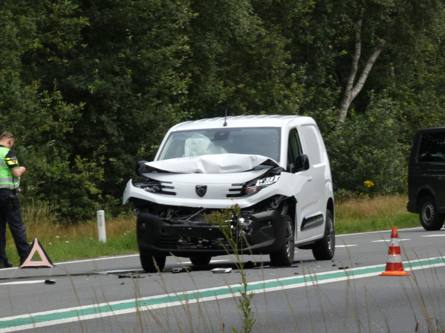 Geplaatst op 19 juli 2025, om 23:02 uurBEILEN – Op de N381 bij Beilen heeft zaterdagmiddag rond 15.27 uur een ongeval plaatsgevonden tussen een busje en een personenauto. Het busje botste achterop de auto tijdens het invoegen.
