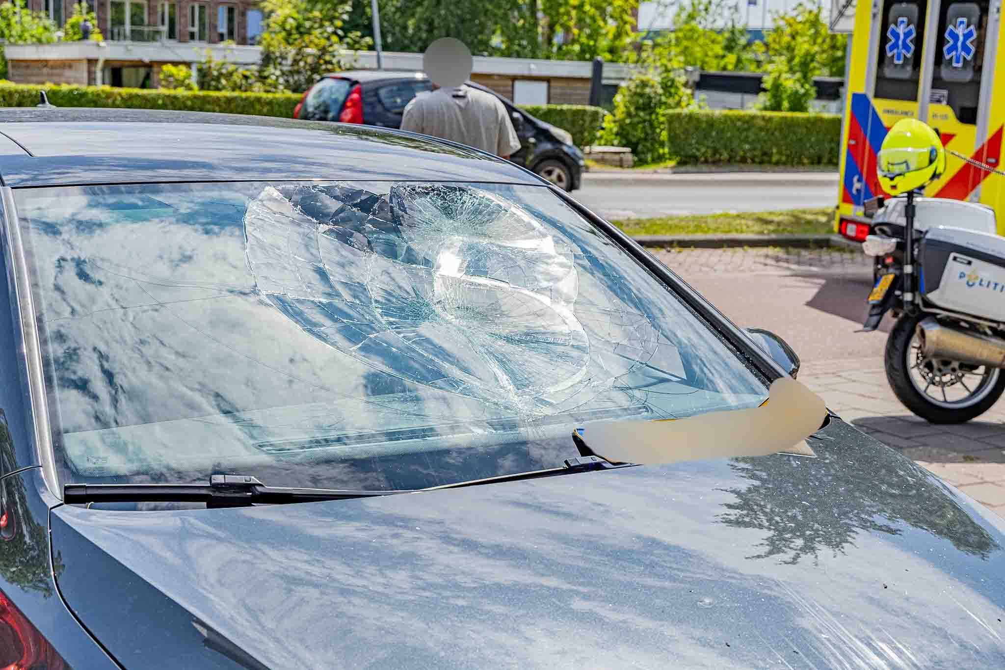 Fietser gewond bij aanrijding met auto, voorruit zwaar beschadigd