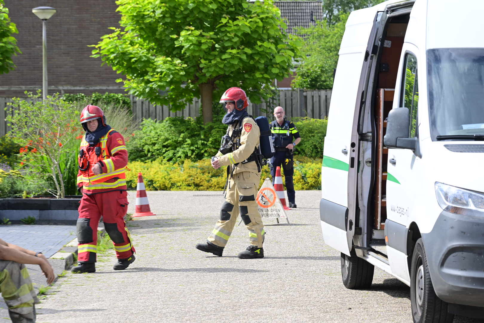 De straat is tijdelijk afgesloten voor verkeer om de situatie veilig af te handelen. Er zijn geen meldingen van gewonden of ontruimingen.