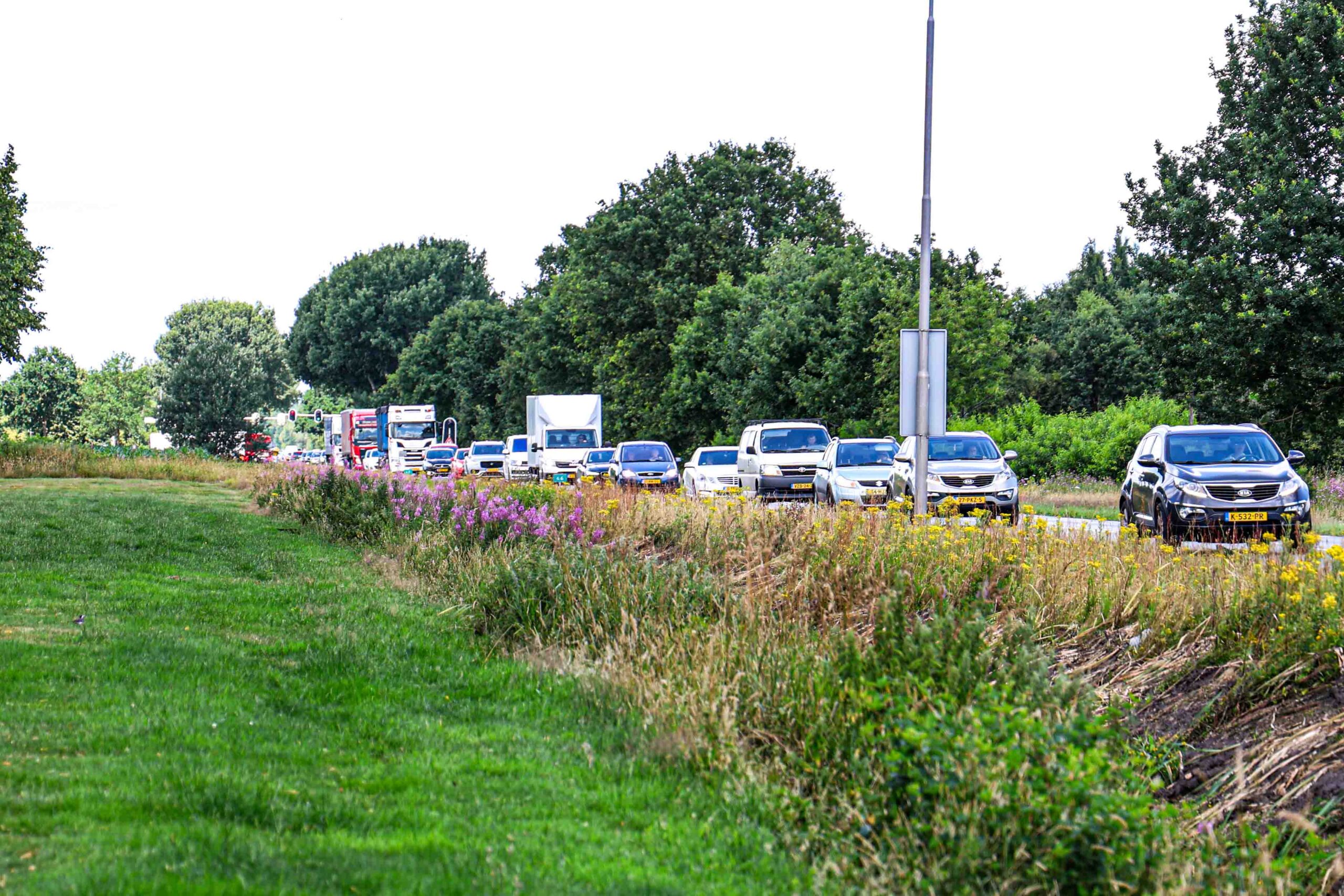 Het incident leidde tot vertraging en een forse file in beide richtingen. Het is nog niet bekend welke vloeistof is gelekt en hoe lang de situatie nog voor hinder zal zorgen.