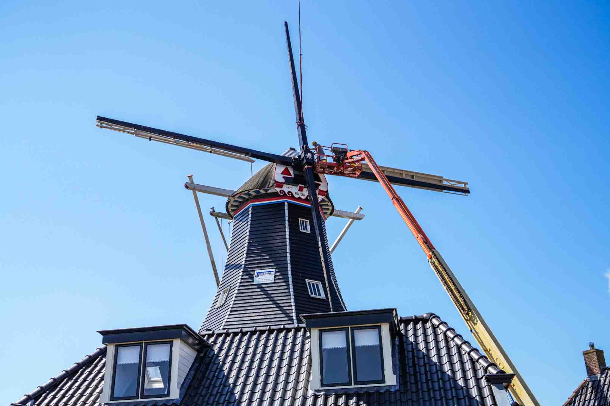 Na anderhalf jaar van intensief herstel gloort er weer hoop. Onder leiding van molenbouwer Jellema uit Burdaard, Konstruktiebedrijf J. Straathof uit Hillegom en Van Reeuwijk-Bouwmeester uit Arum zijn de werkzaamheden in volle gang. Deze week markeert een belangrijk moment: de roeden worden teruggeplaatst, waardoor Fortuna haar ‘vleugels’ weer terugkrijgt.