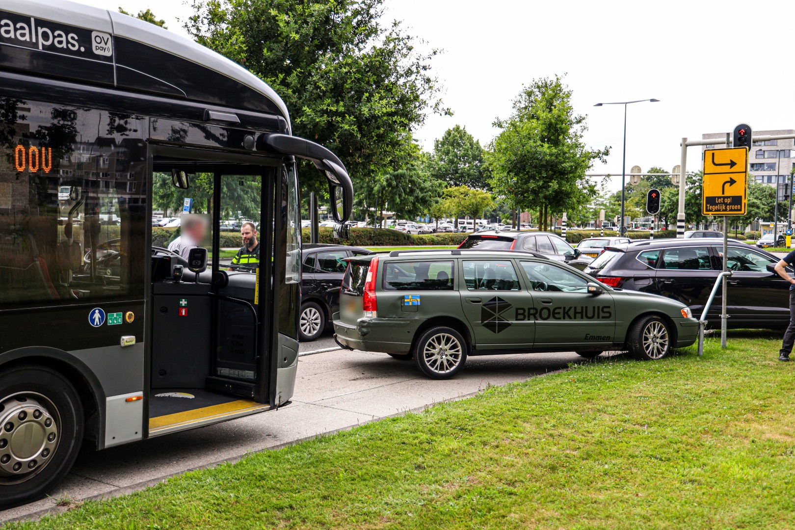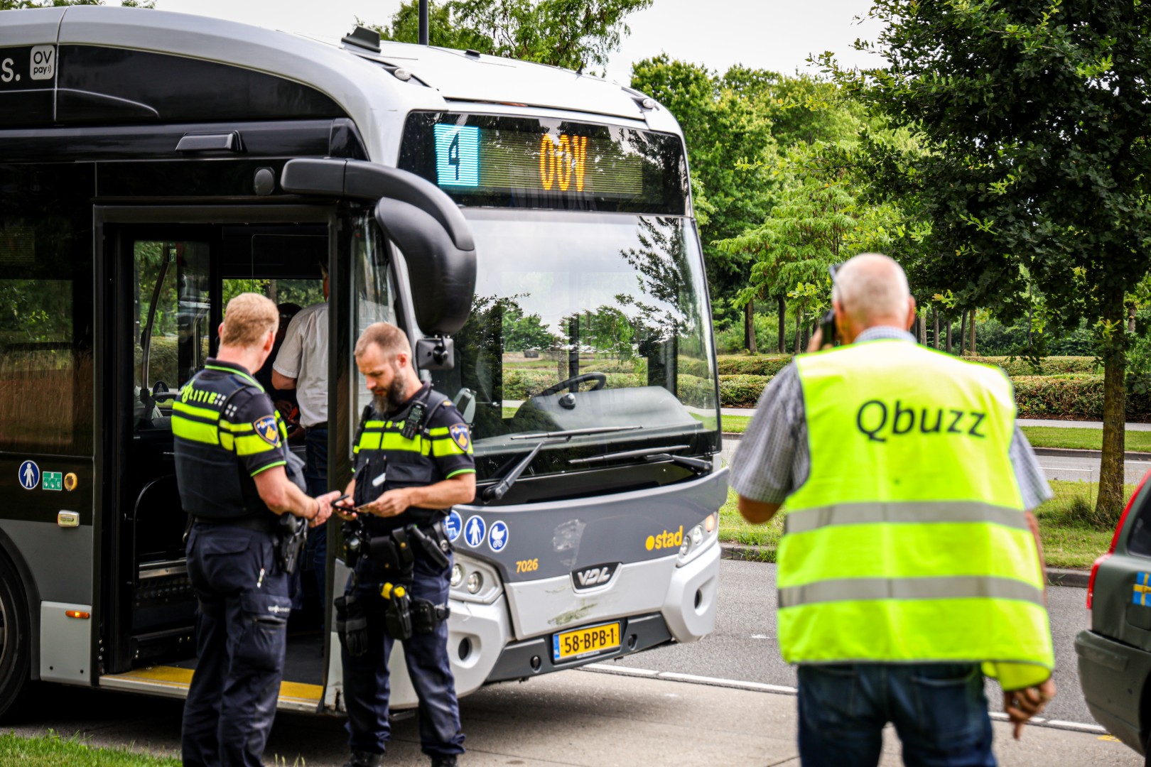 Het incident gebeurde rond het middaguur. In de bus zaten enkele passagiers, die ongedeerd bleven. Zij zijn later met een andere bus verder gereisd. Ook de bestuurder van de auto kwam met de schrik vrij.