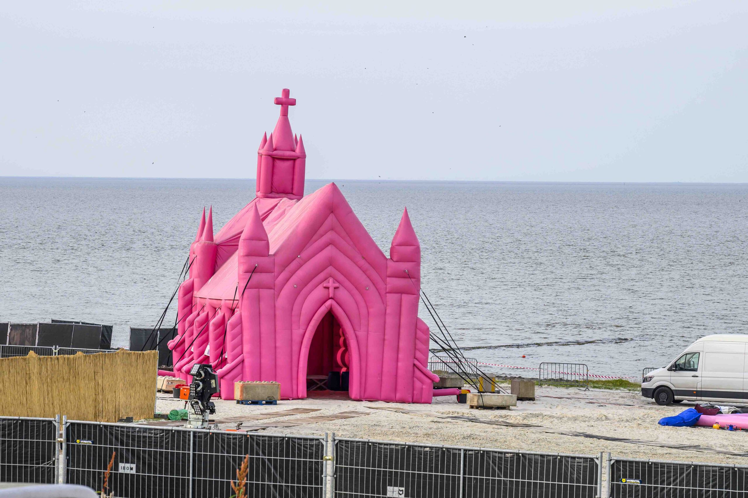Geplaatst op 20 juli 2025, om 20:56 uurDELFZIJL – Het stadsstrand van Delfzijl was zondag het toneel van een besloten evenement van studentenvereniging Vindicat, waarbij zo’n 2.000 studenten per bus naar de havenstad werden vervoerd. Het feest, met als thema Geheimedag – het land van geen Id(ee), vond plaats op een afgezet deel van het strand, dat was ingericht met onder andere een draaimolen, bar, opblaasbare kerk en podium.