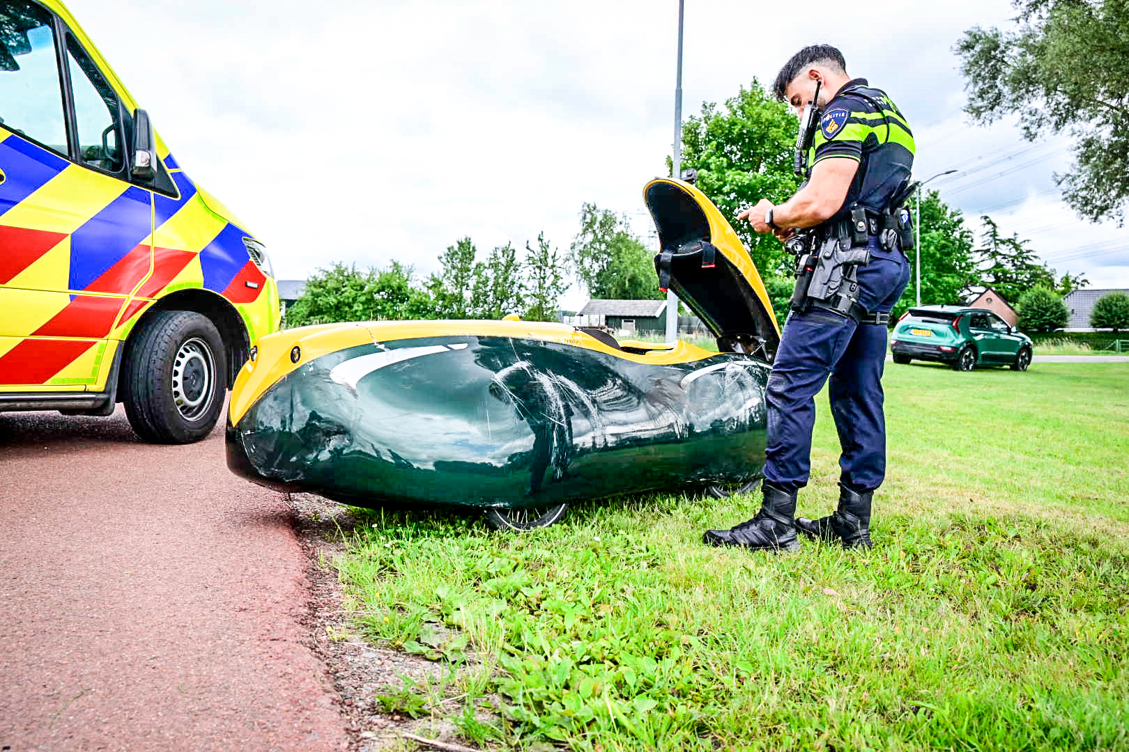 De ligfietser zou van rechts zijn gekomen en had volgens de voorrangsregels voorrang moeten krijgen. De automobilist bleek echter te rijden met een ongeldig verklaard rijbewijs en is meegenomen door de politie.