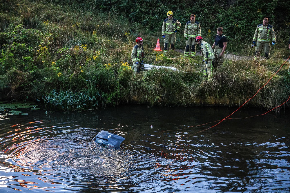 Auto te water: hulpdiensten rukken groots uit