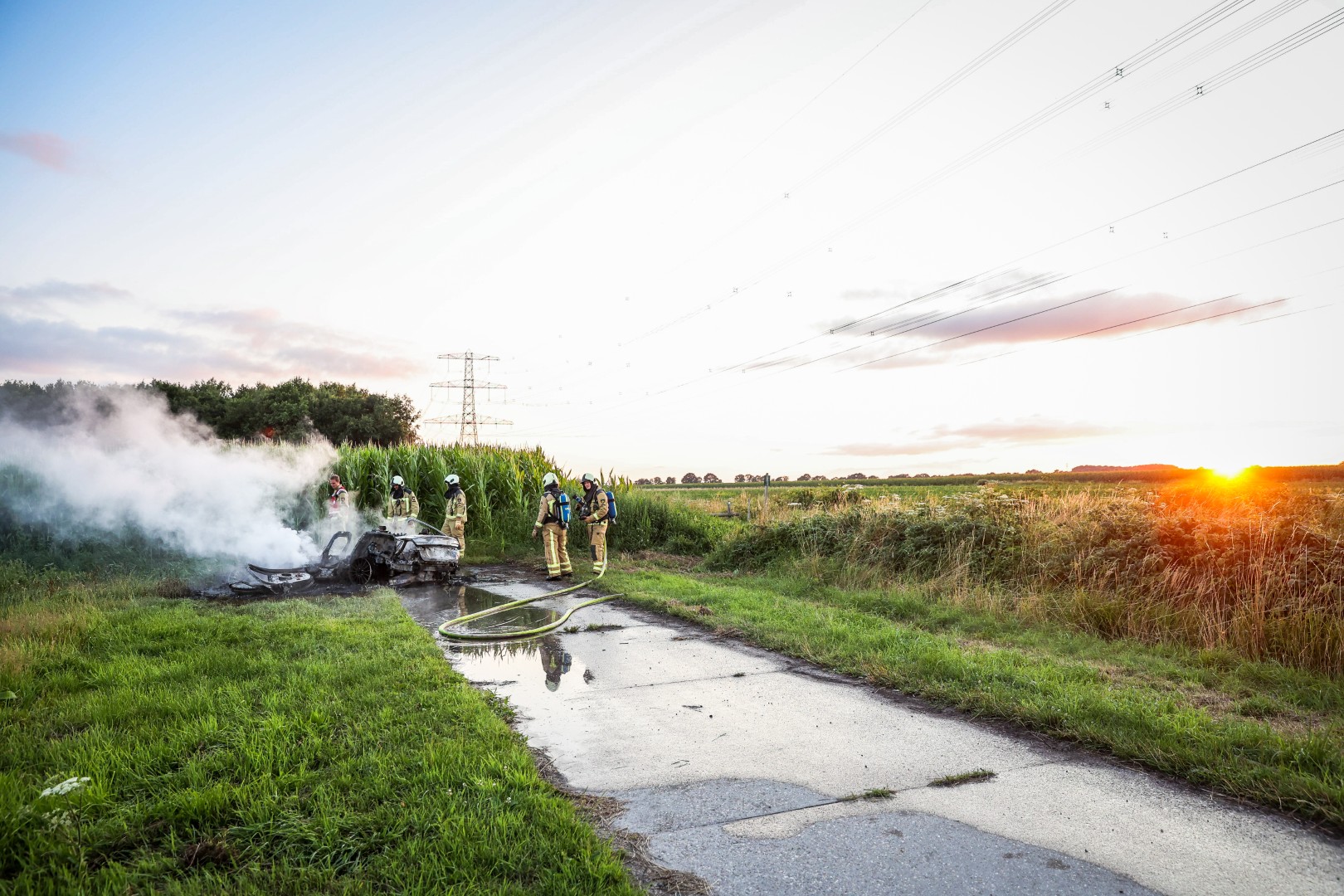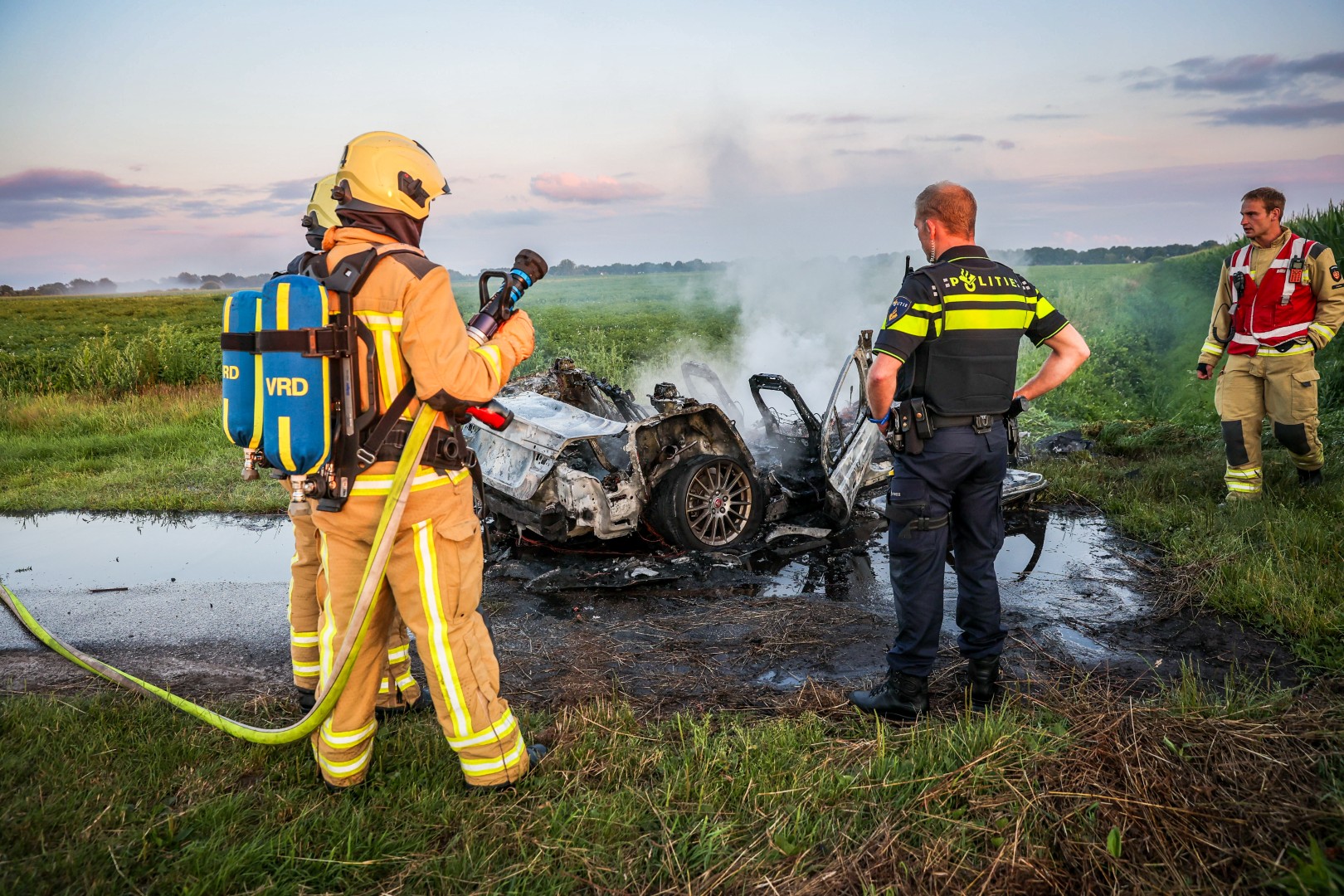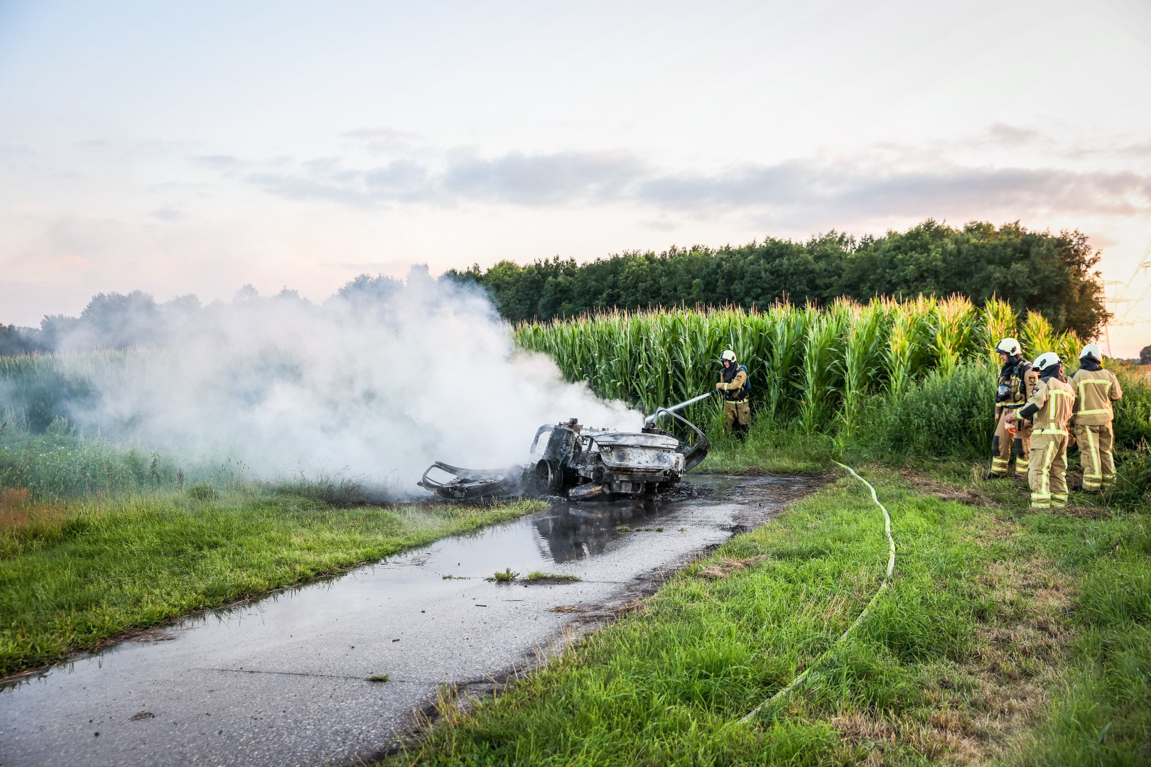 Bij aankomst stond het voertuig al volledig in brand. Ondanks de snelle inzet van de brandweer kon de auto niet meer worden gered en raakte volledig verwoest.