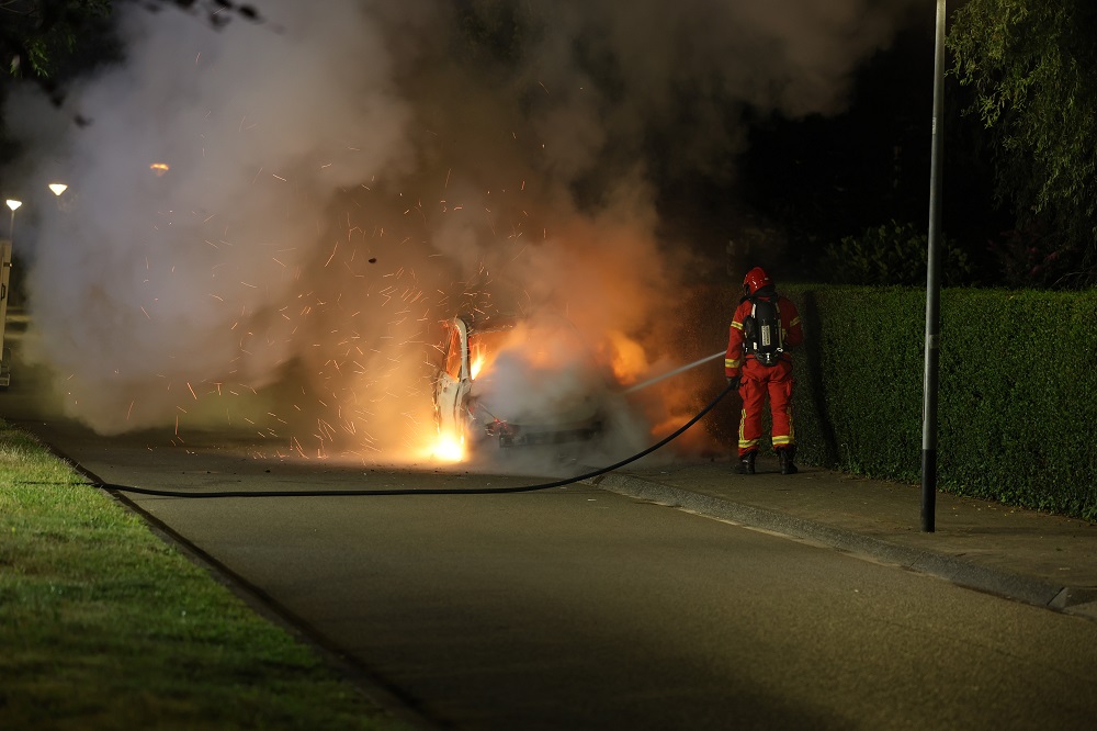 Metershoge vlammen bij autobrand, mogelijk brandstichting