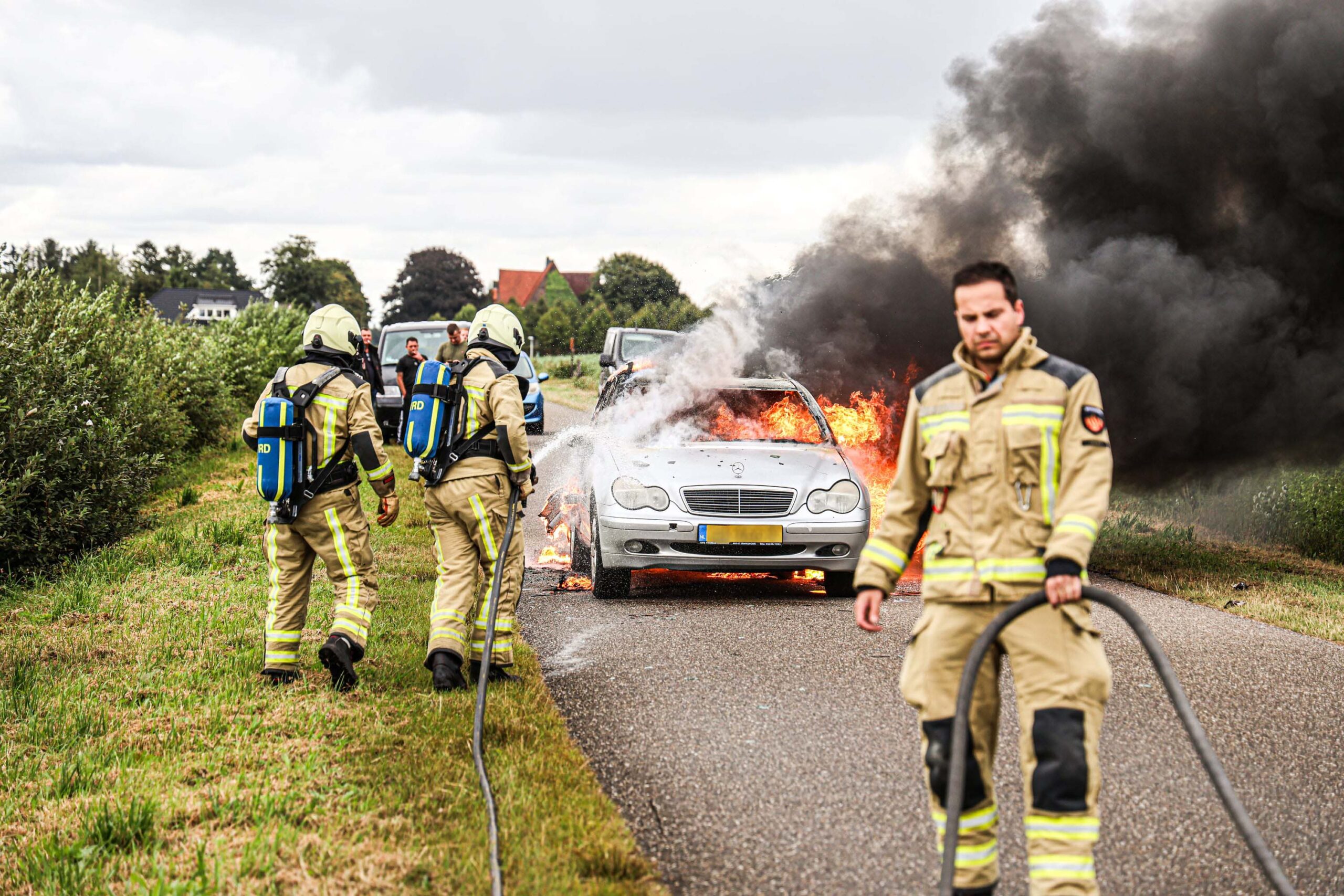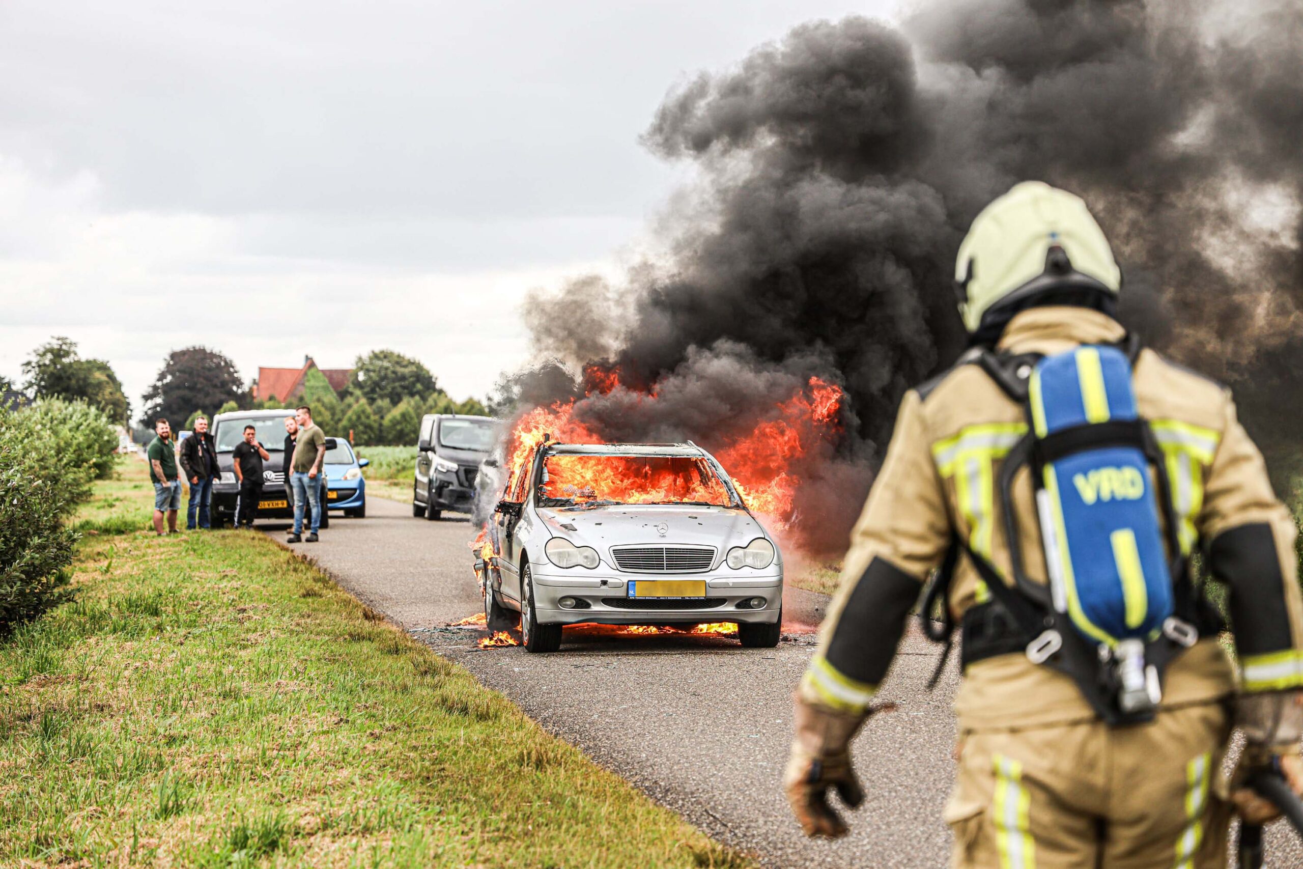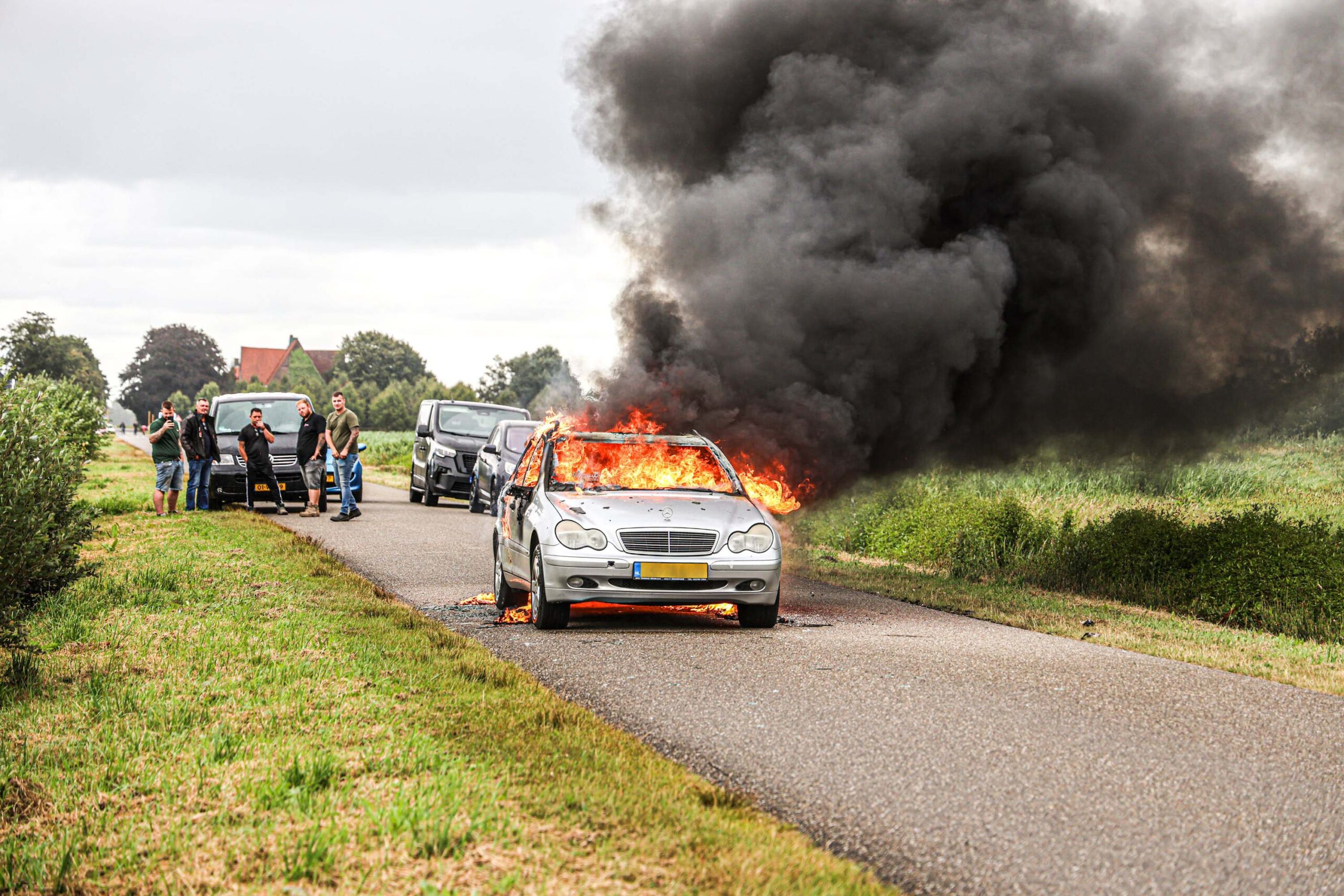 De brand ontstond door nog onbekende oorzaak. De auto kwam tot stilstand langs de weg, waarna de vlammen zich snel verspreidden. De brandweer was snel ter plaatse en begon direct met blussen, maar kon niet voorkomen dat het voertuig volledig uitbrandde.