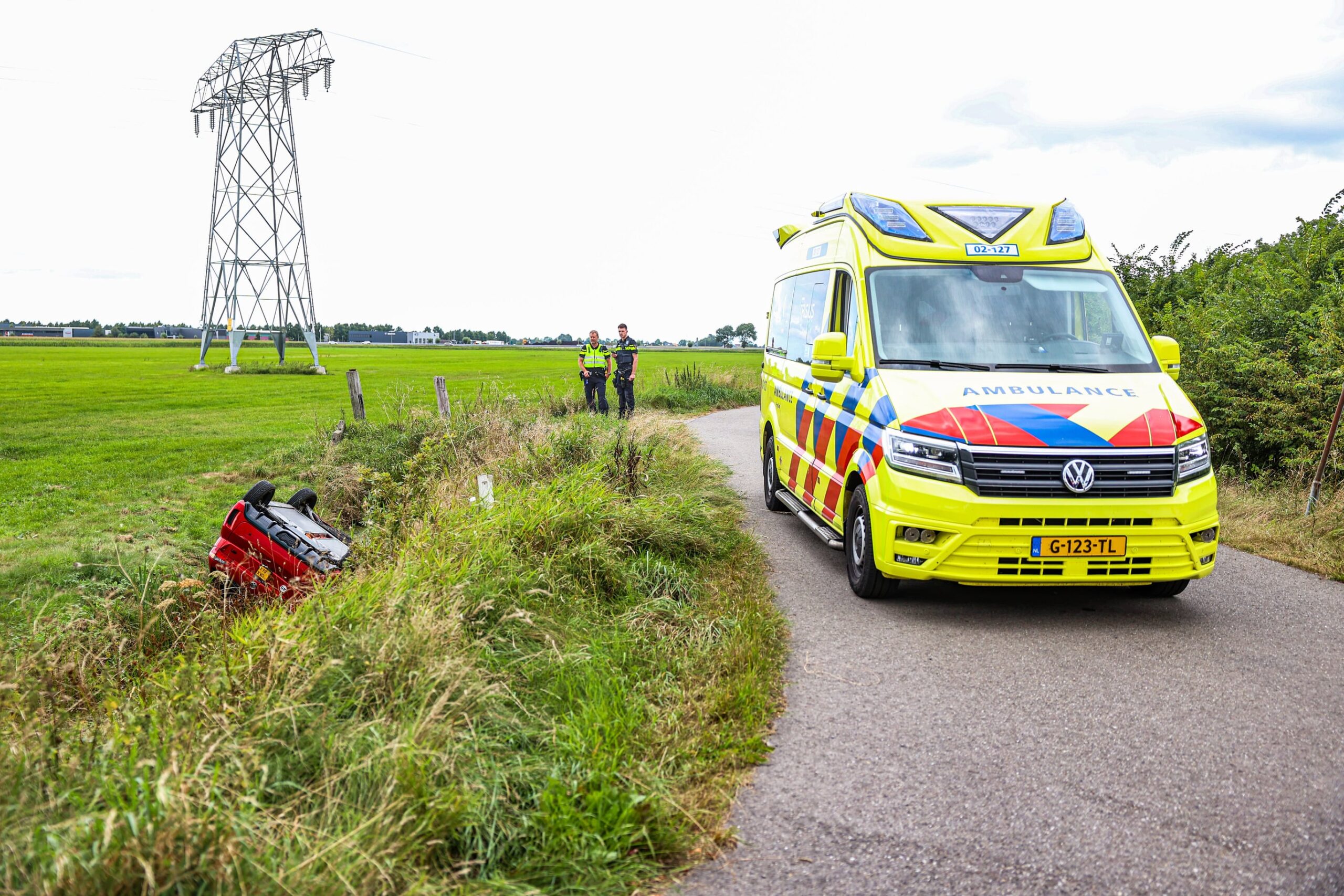 Geplaatst op 23 augustus 2025, om 17:20 uurHASKERHORNE – Zaterdagmiddag is op de Jousterweg bij Haskerhorne een auto van de weg geraakt en op de kop in een sloot beland.