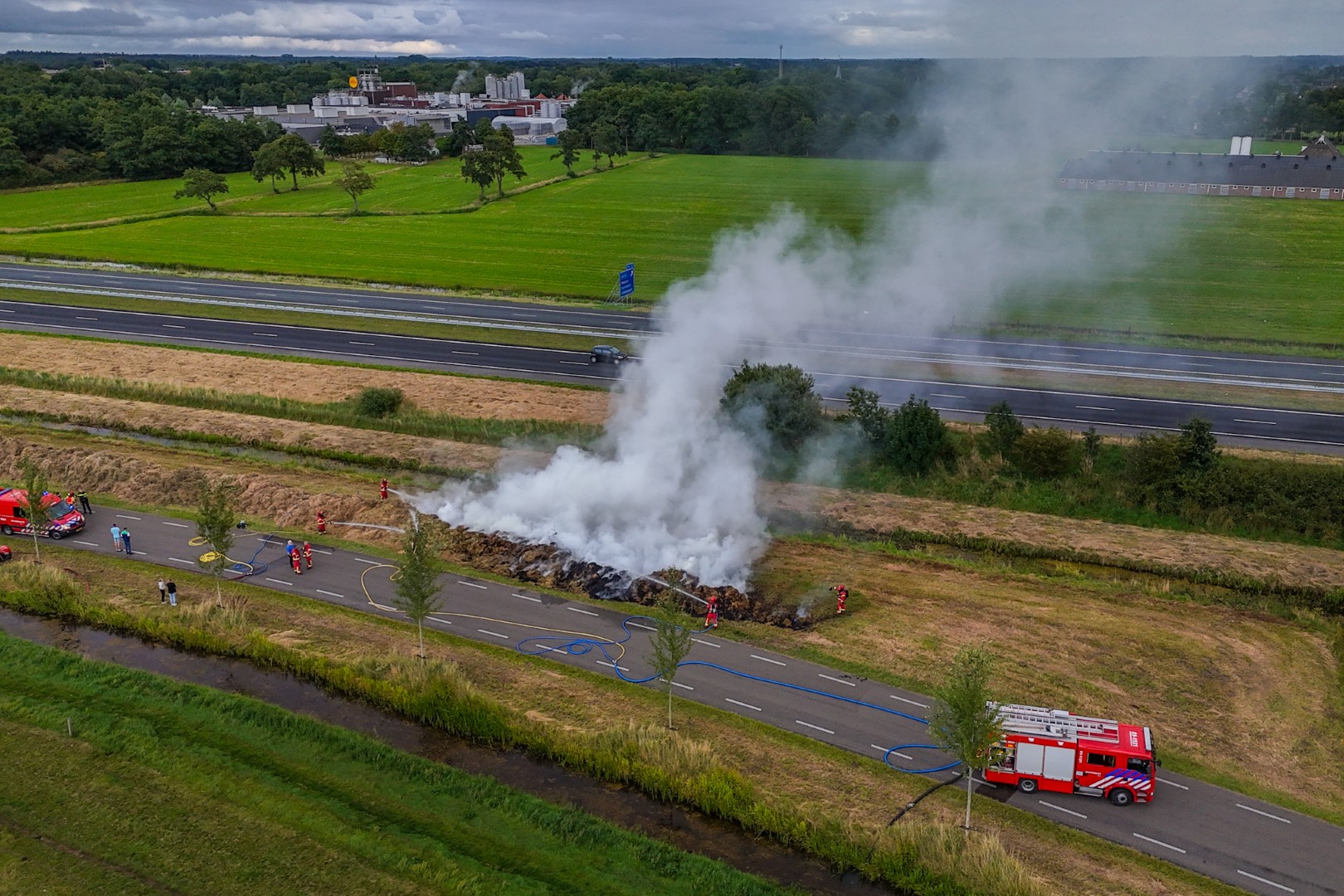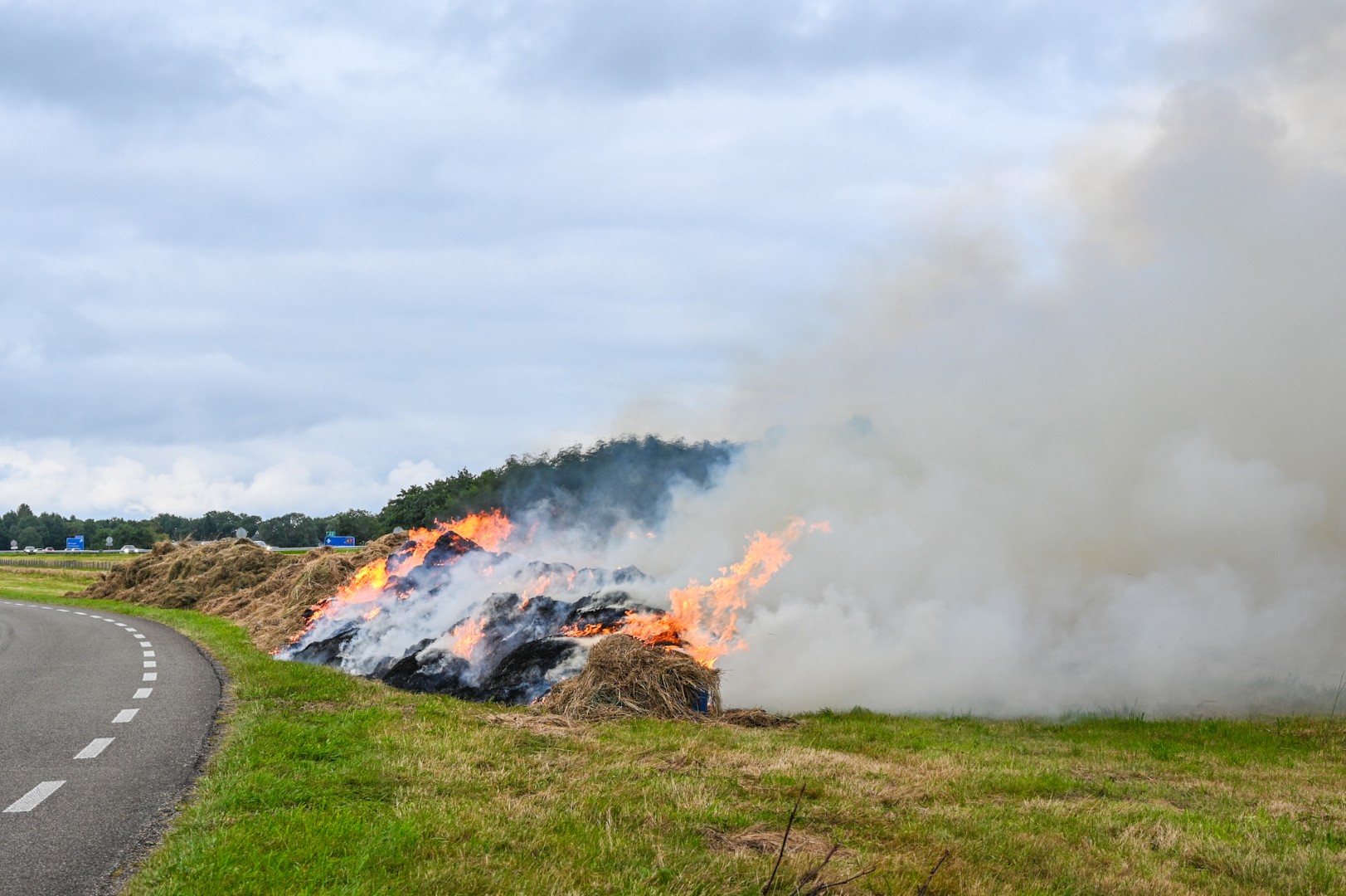 Ongeveer veertig procent van de bult stond in brand. De rook trok over de A7, waardoor het verkeer richting Friesland nauwelijks zicht had en gevaarlijke situaties ontstonden. Rijkswaterstaat sloot een rijstrook af zodat het verkeer rustig kon passeren. De Parallelweg werd volledig afgesloten.