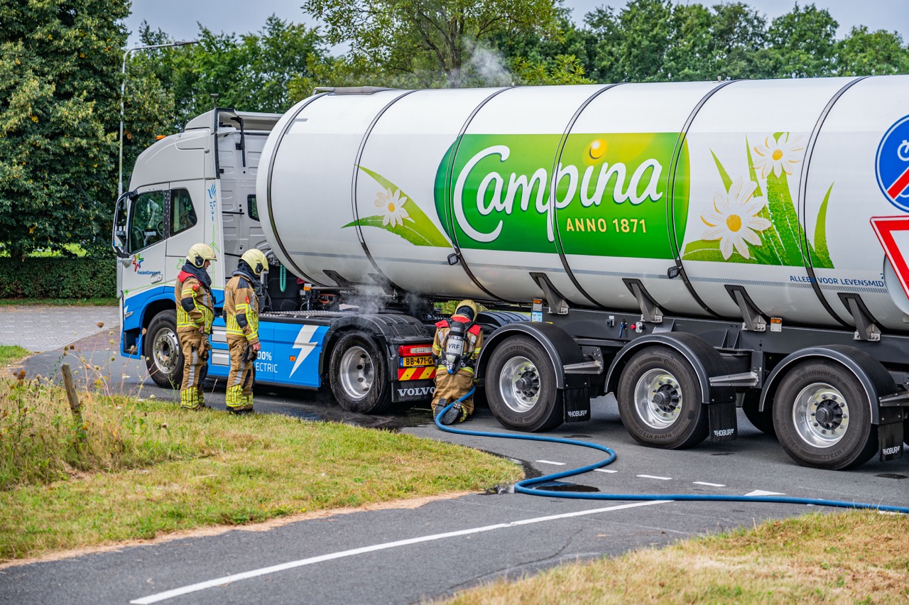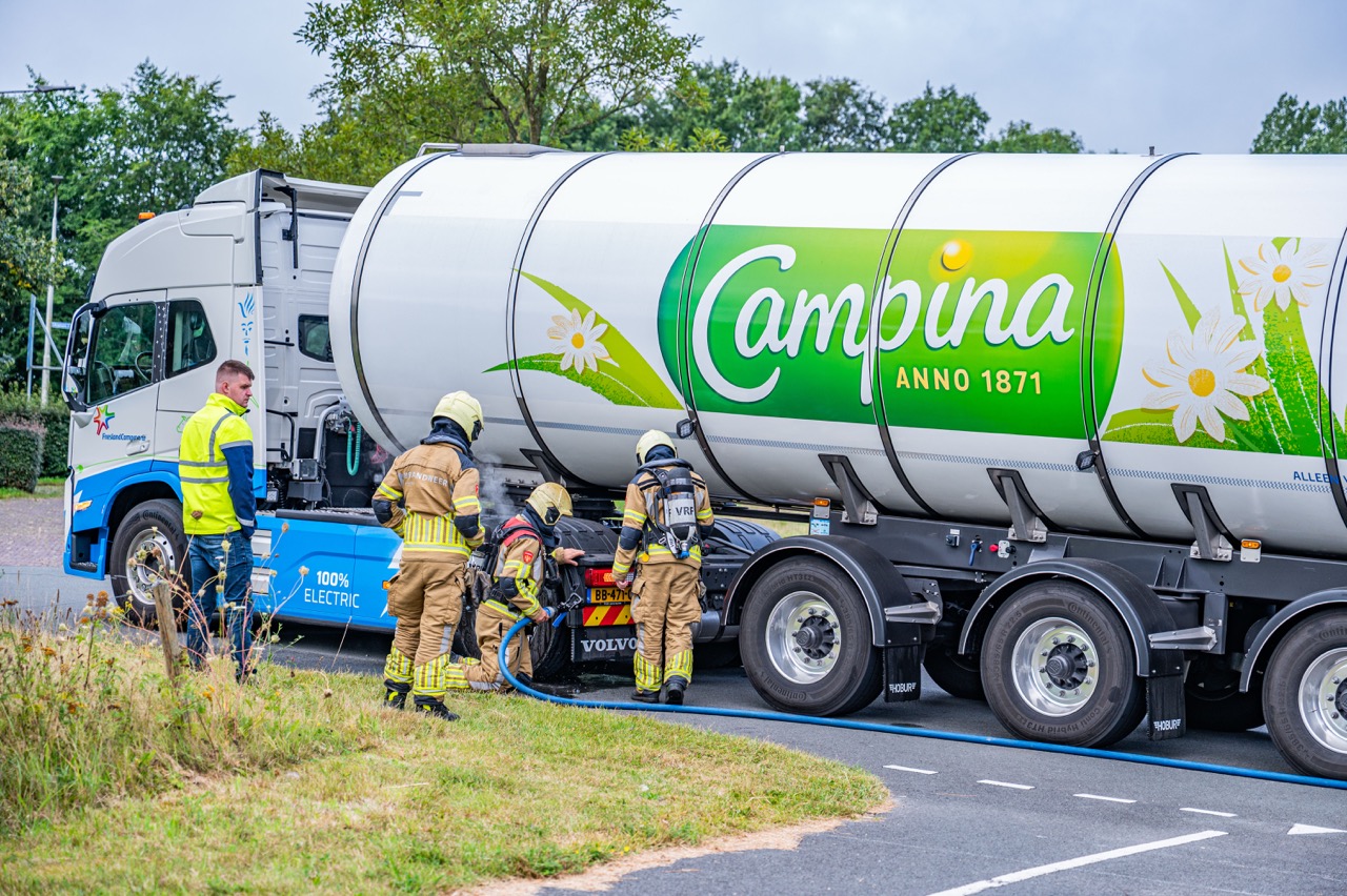 Oververhitte remmen melkwagen zorgen voor inzet brandweer