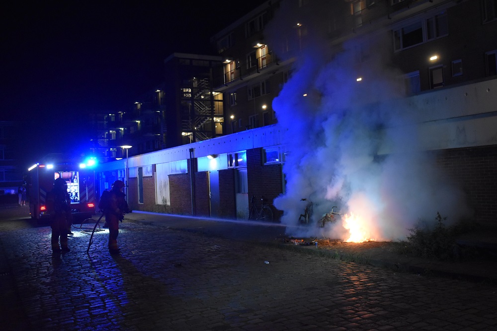 Ter plaatse bleek een scooter in brand te staan, vlak tegen een gevel van een gebouw aan. De brand werd snel onder controle gebracht door de brandweerlieden.