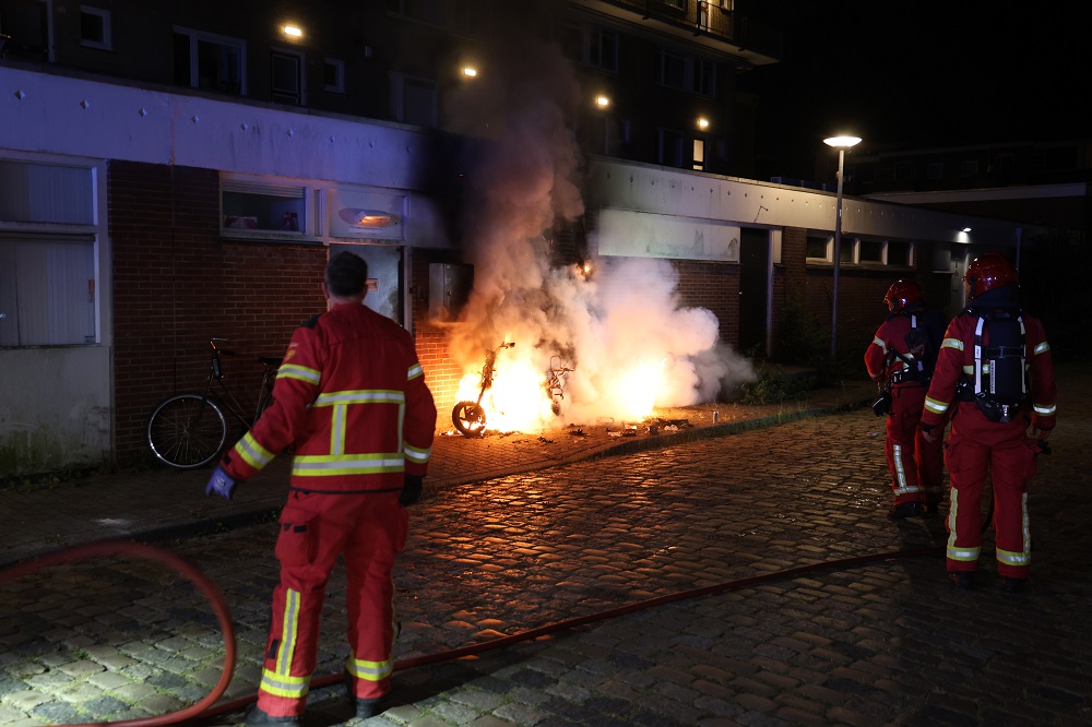 Ter plaatse bleek een scooter in brand te staan, vlak tegen een gevel van een gebouw aan. De brand werd snel onder controle gebracht door de brandweerlieden.