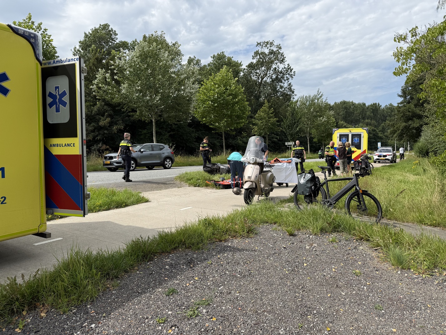 Door de aanrijding kwamen beide bestuurders hard ten val. Omstanders boden direct eerste hulp en alarmeerden de hulpdiensten. Twee ambulances en meerdere politie-eenheden kwamen ter plaatse. Beide scooterrijders zijn ter plekke behandeld door ambulancepersoneel. Of zij naar het ziekenhuis zijn gebracht, is nog niet bevestigd.