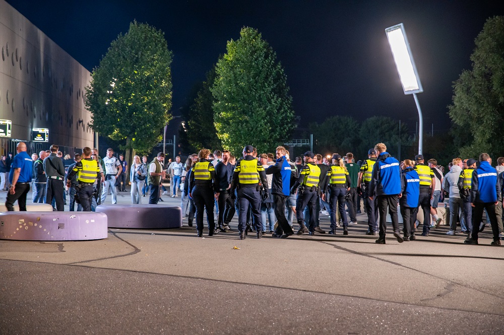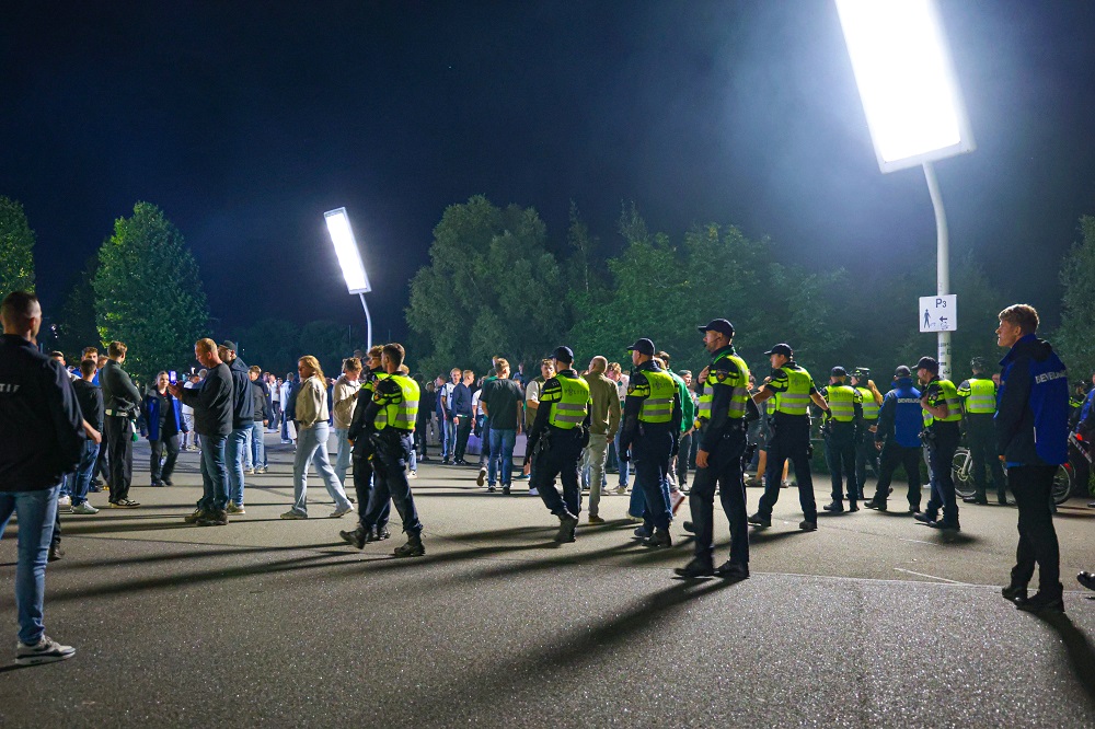 Om de situatie te beheersen, vormden agenten een linie en werden supporters stap voor stap uit de omgeving van het stadion verwijderd.