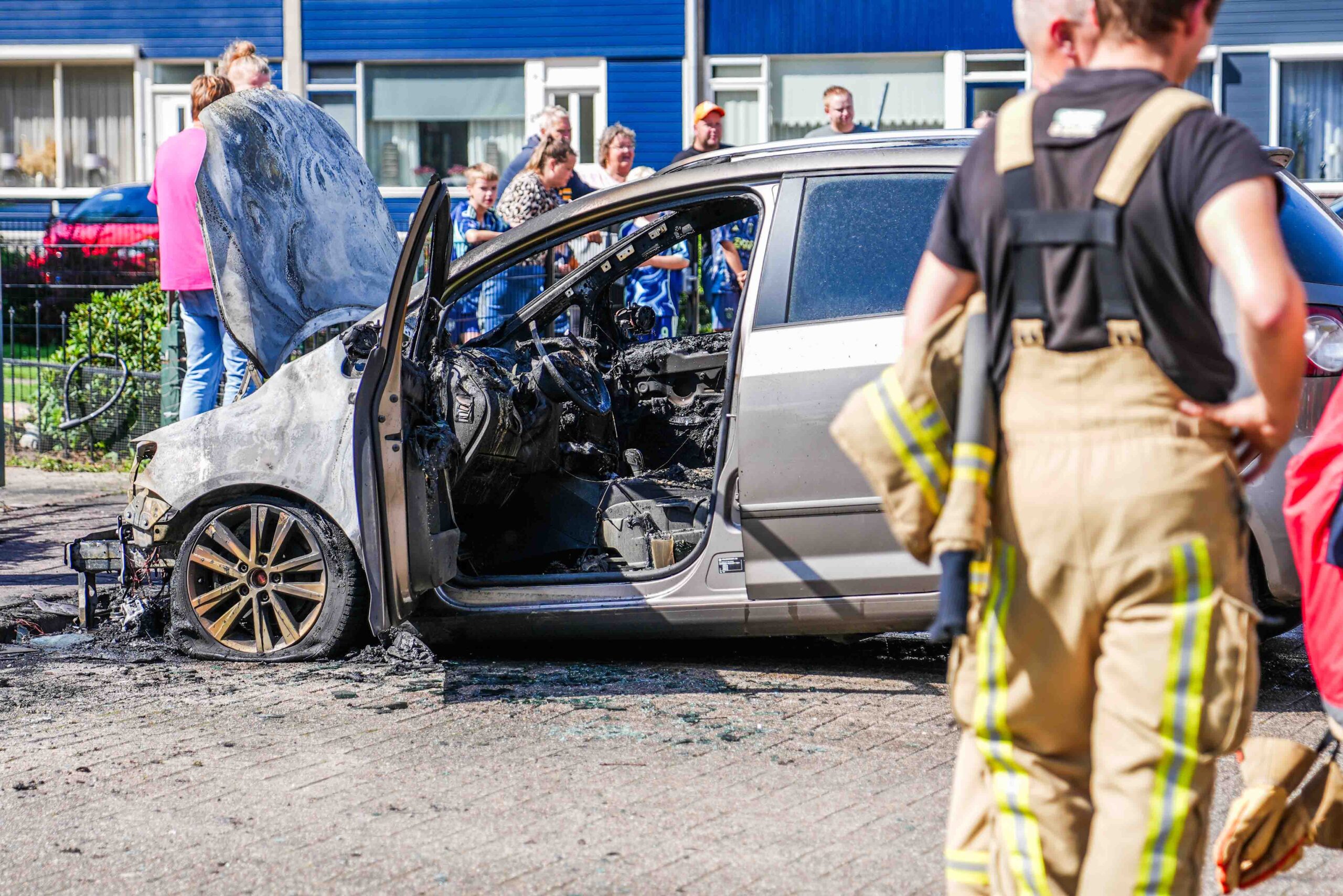 De brand ontstond aan de voorzijde van het voertuig. Hoewel de brandweer snel ter plaatse was, kon niet worden voorkomen dat de auto volledig uitbrandde en total loss raakte.