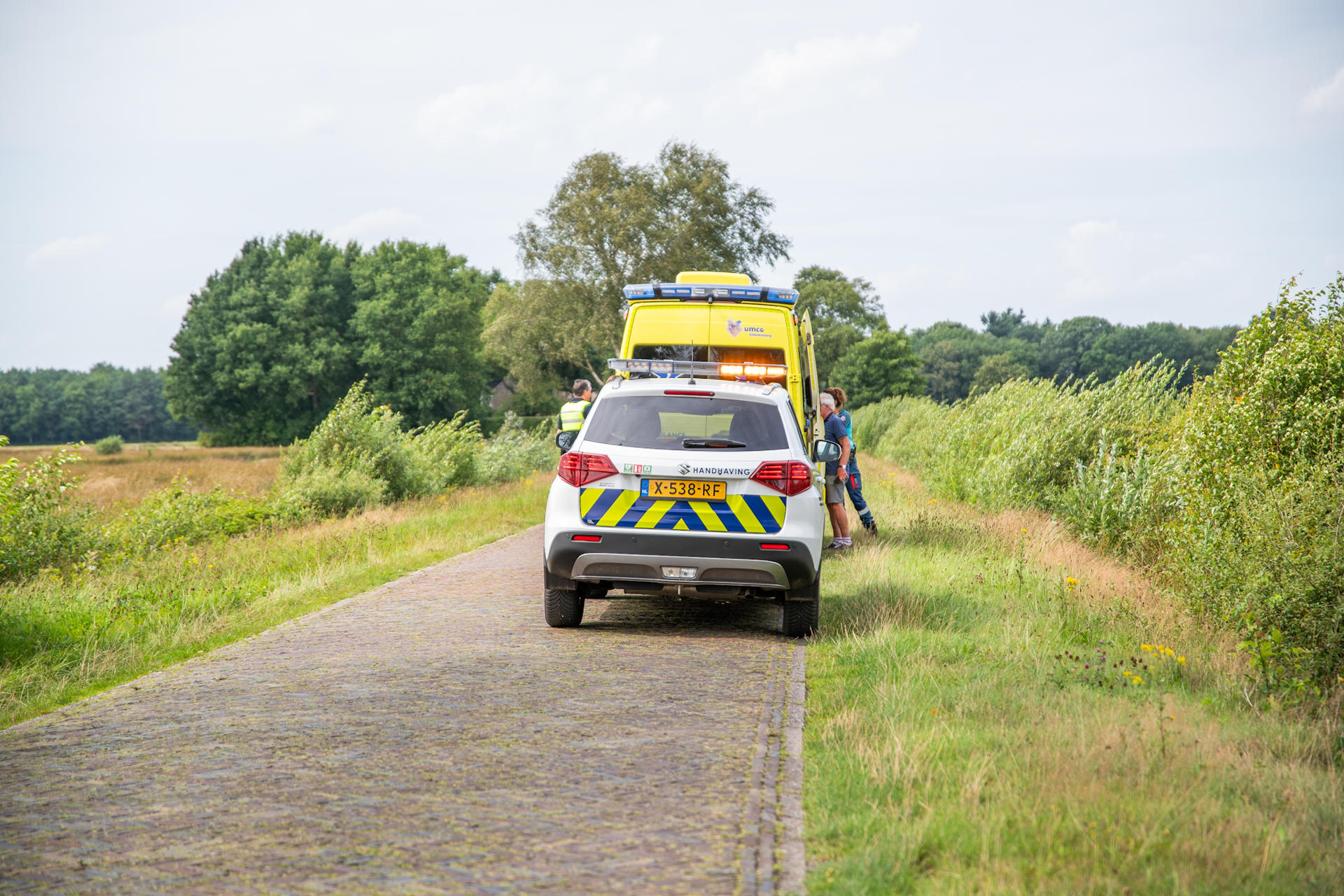 De vrouw kwam door nog onbekende oorzaak ten val. Ze is ter plaatse behandeld en vervolgens met spoed overgebracht naar het ziekenhuis. De Doldersummerweg werd tijdelijk afgesloten om de hulpverlening veilig te laten verlopen.