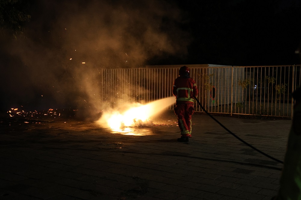 GRONINGEN – Vrijdagavond heeft op het schoolplein van de Anne Frankschool aan De Sanstraat in Hoogkerk korte tijd brand gewoed.