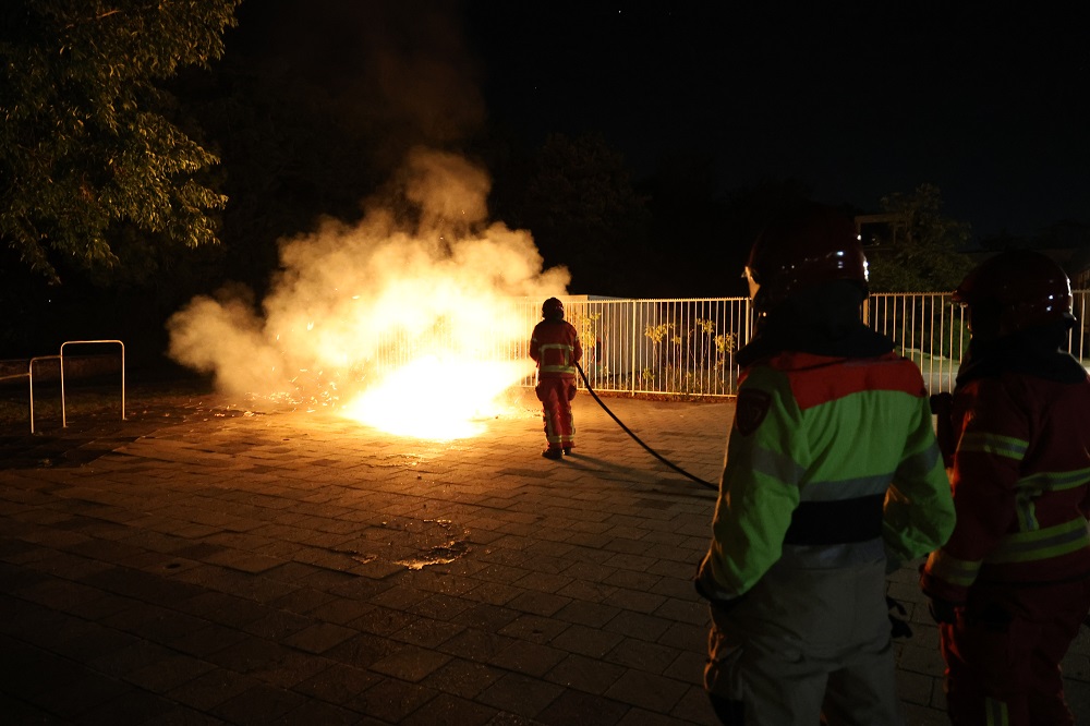 De melding kwam rond 22.45 uur binnen, waarna de brandweer met een tankautospuit uitrukte. Op het plein bleek een kliko in brand te staan. Hoewel de brandweerlieden snel ter plaatse waren, kon niet worden voorkomen dat de container volledig verloren ging. De brand werd geblust met één straal hogedruk.