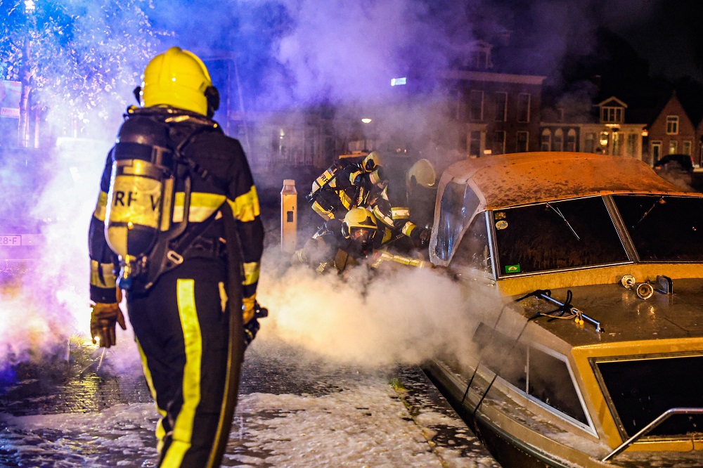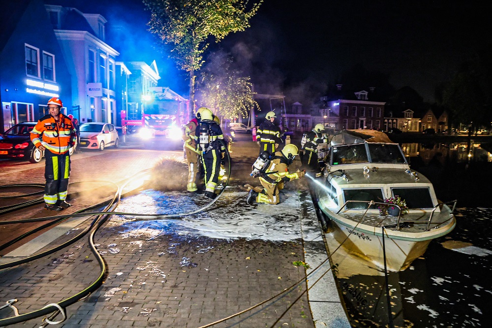 Boot vliegt in brand in centrum van Heerenveen